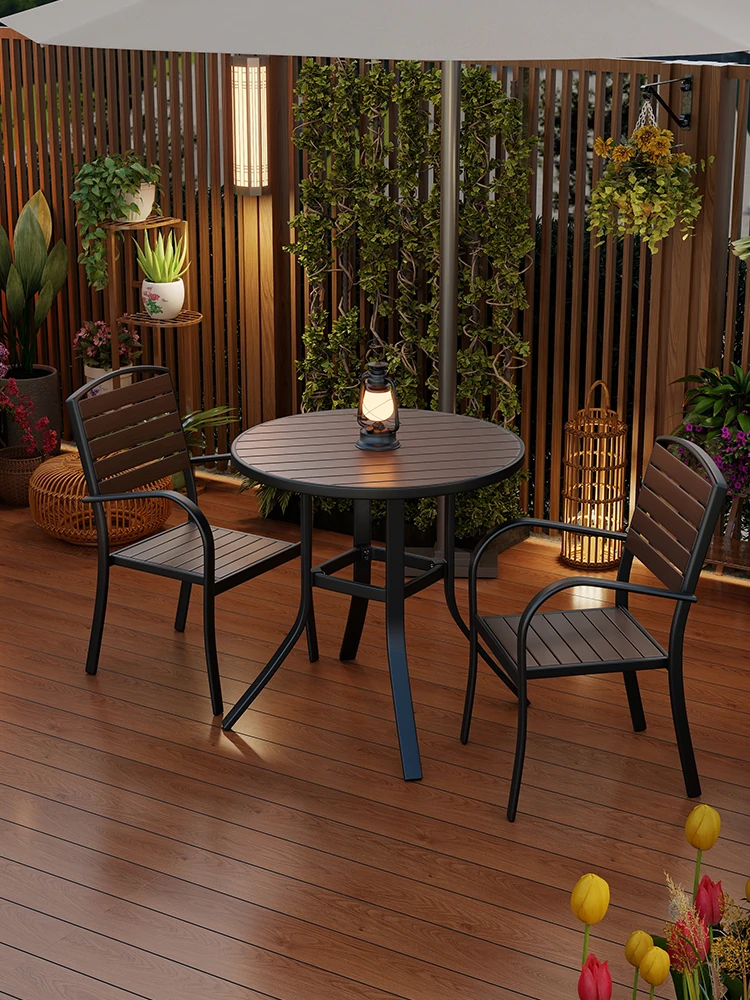 アウトドア庭園テーブルセット|バルコニー・ガーデンに最適なリラックスチェア&テーブル|耐腐食性プラスチック木材使用|おしゃれで快適なテラスライフを楽しもう!