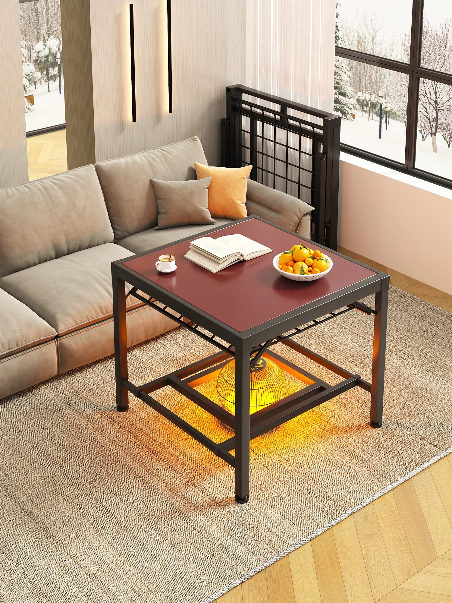 冬の新作!家庭用簡易焚き火テーブル - 食事にもぴったりな折りたたみ式正方形デザイン。暖かさと便利さを兼ね備えた一体型テーブルで、冬のひとときを楽しく過ごしましょう!