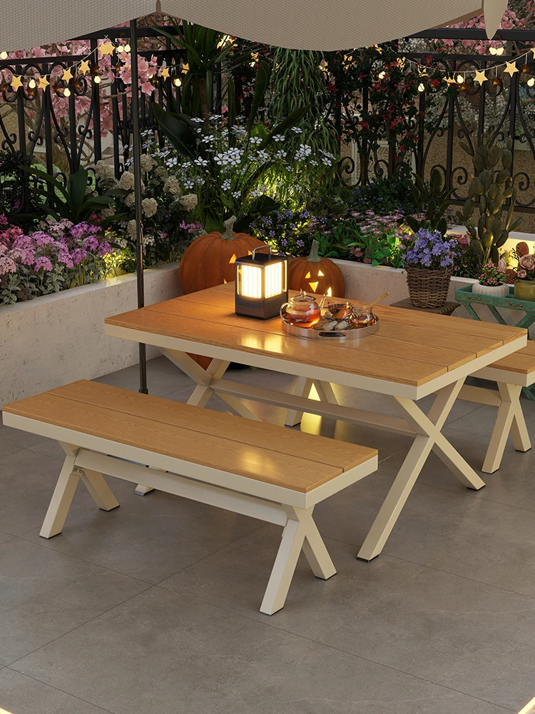 防水・防晒・防腐機能付き!アウトドアプラスチックウッドパティオテーブル&チェアセット - 屋外庭園やバルコニーに最適なリラックス空間を実現!快適でスタイリッシュなひとときをお楽しみください。