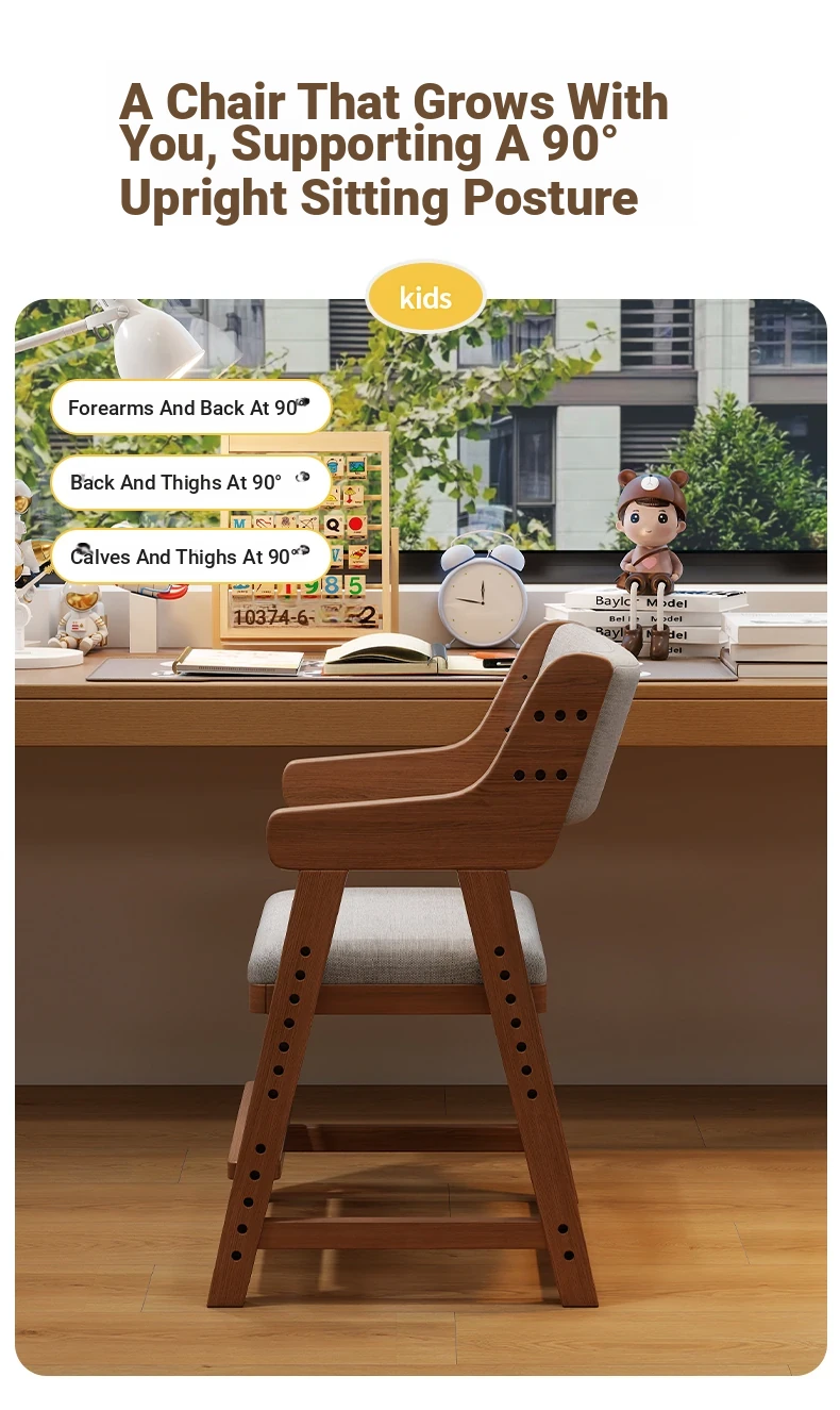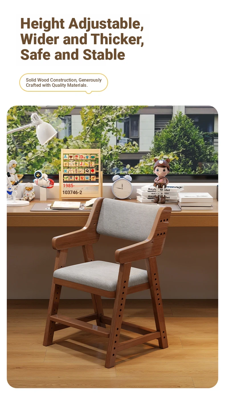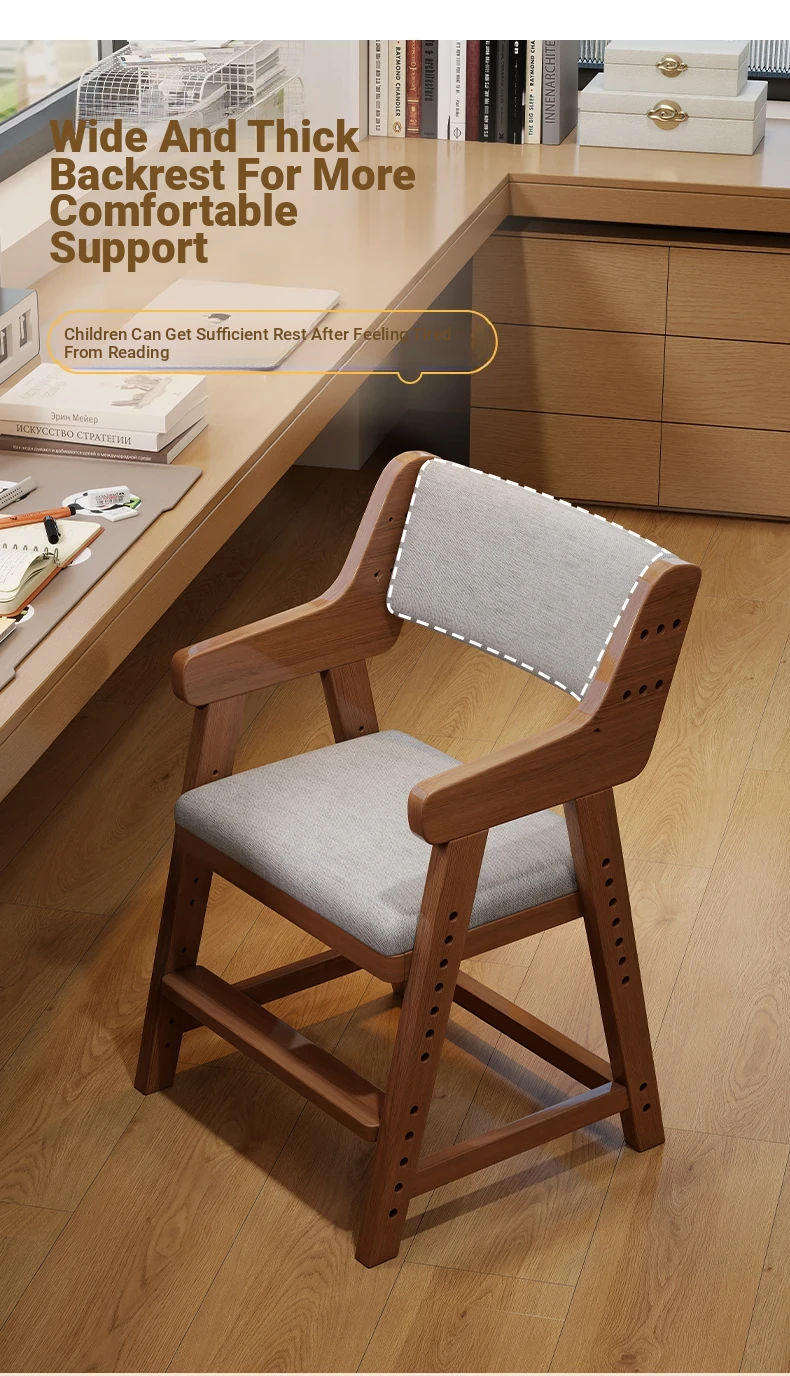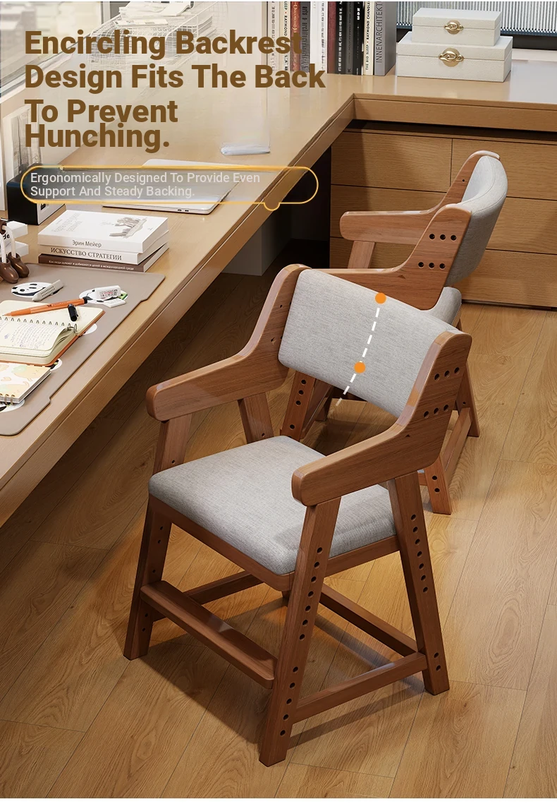 Adjustable Solid Wood Study Chair for Kids - Ergonomic Writing Chair with Backrest for Proper Posture, Perfect for Students and Home Desks