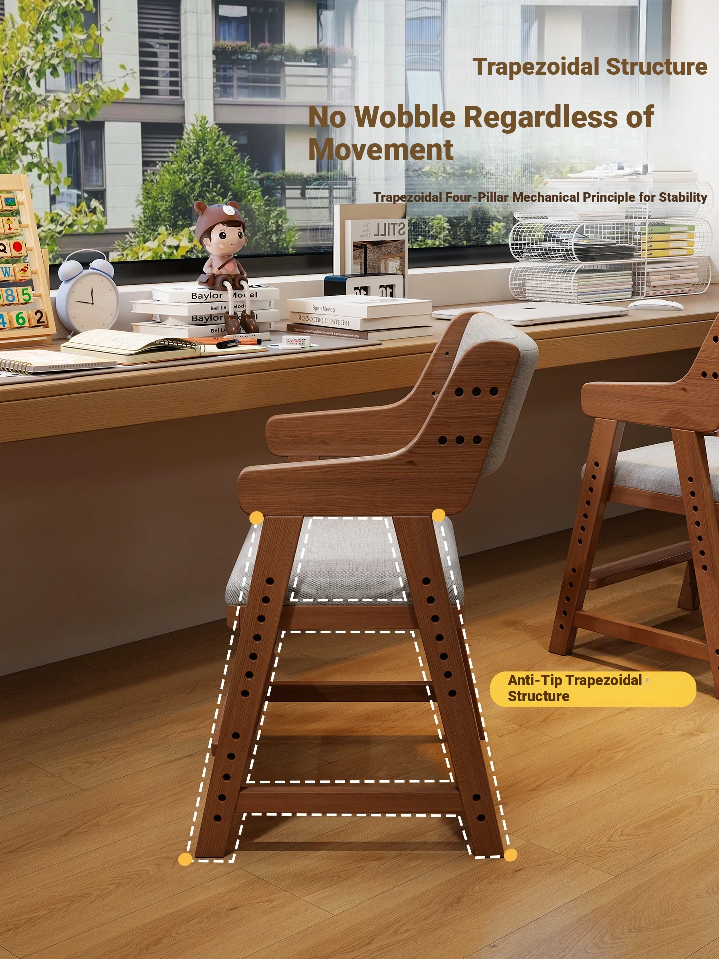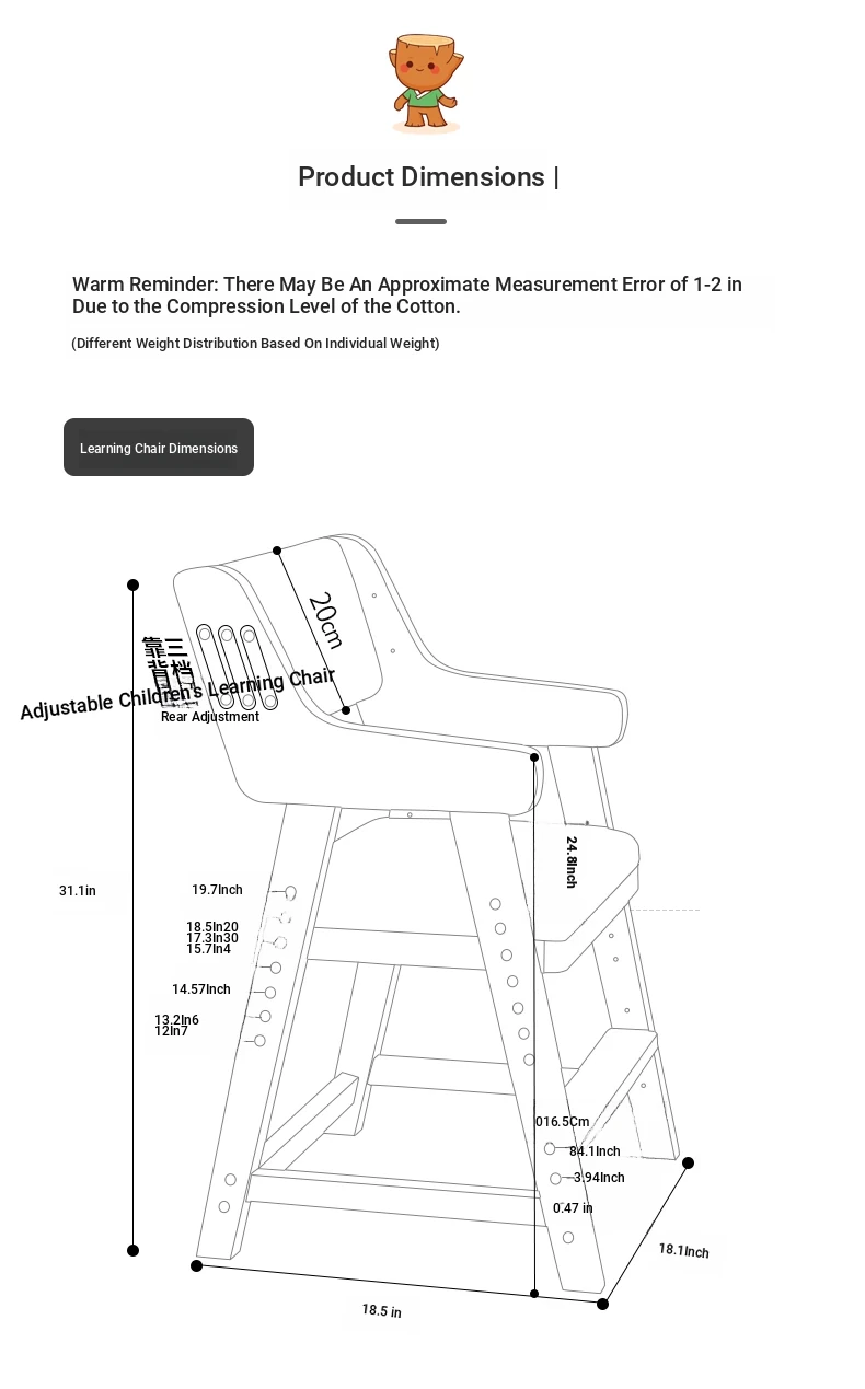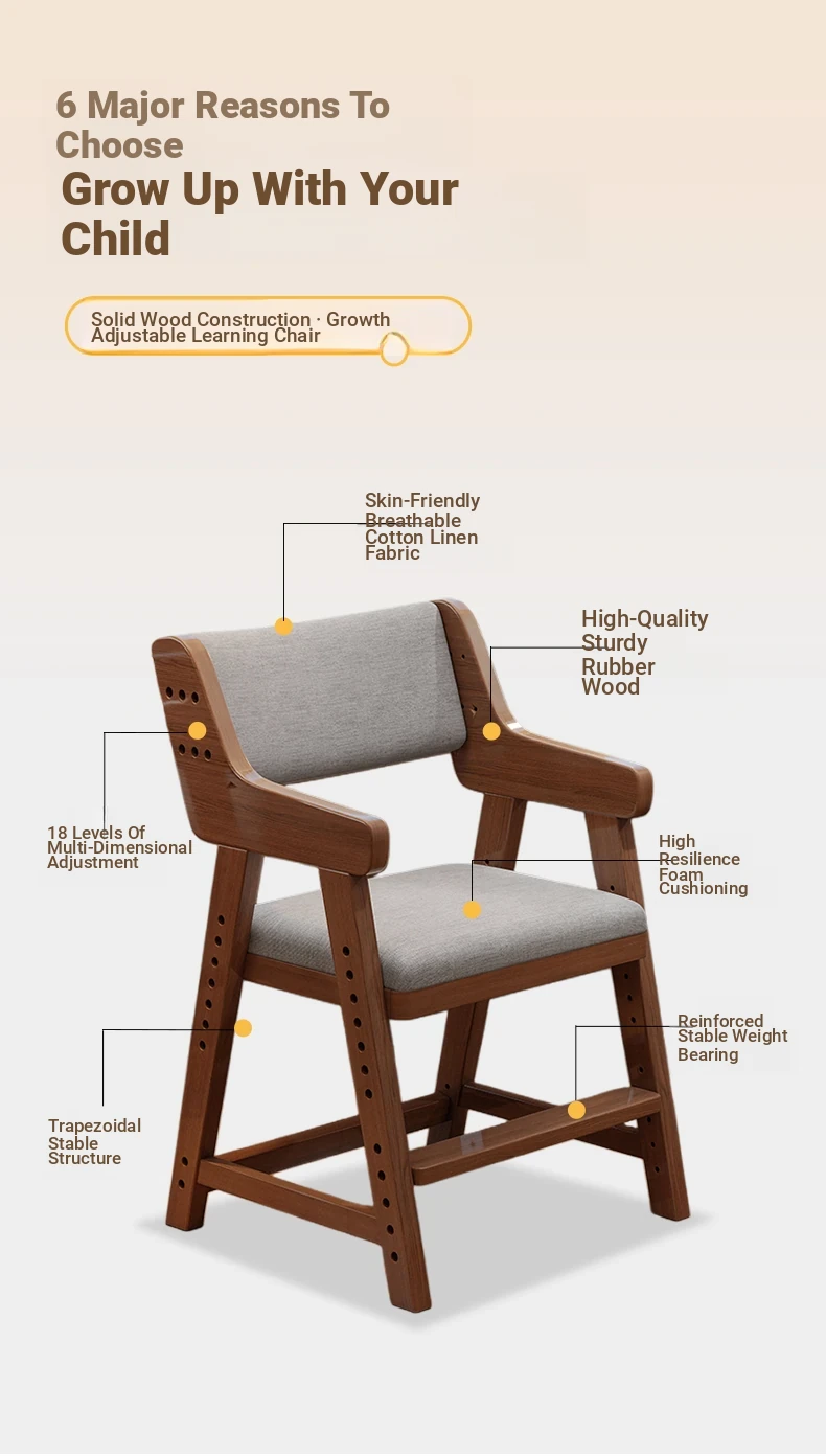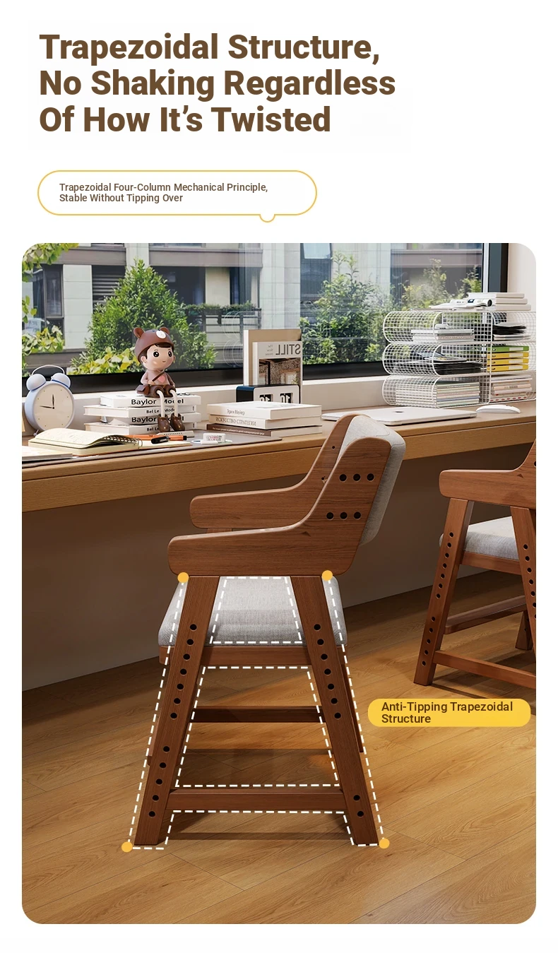 Adjustable Solid Wood Study Chair for Kids - Ergonomic Writing Chair with Backrest for Proper Posture, Perfect for Students and Home Desks