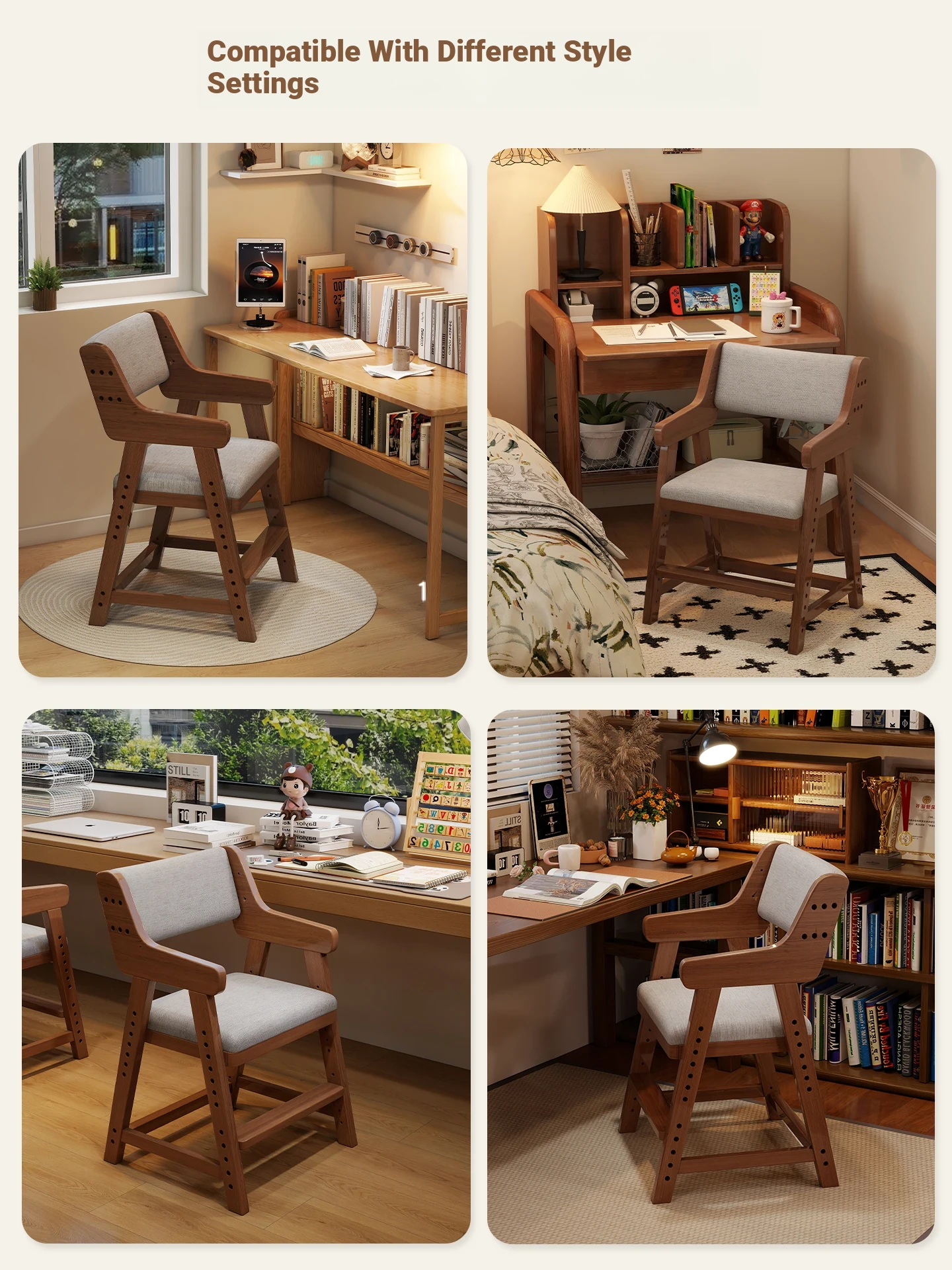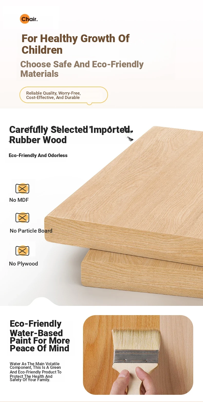 Y733-[Preferred for 7-18 Years Old] Log Color Study Chair(-Imported Rubber Wood)
