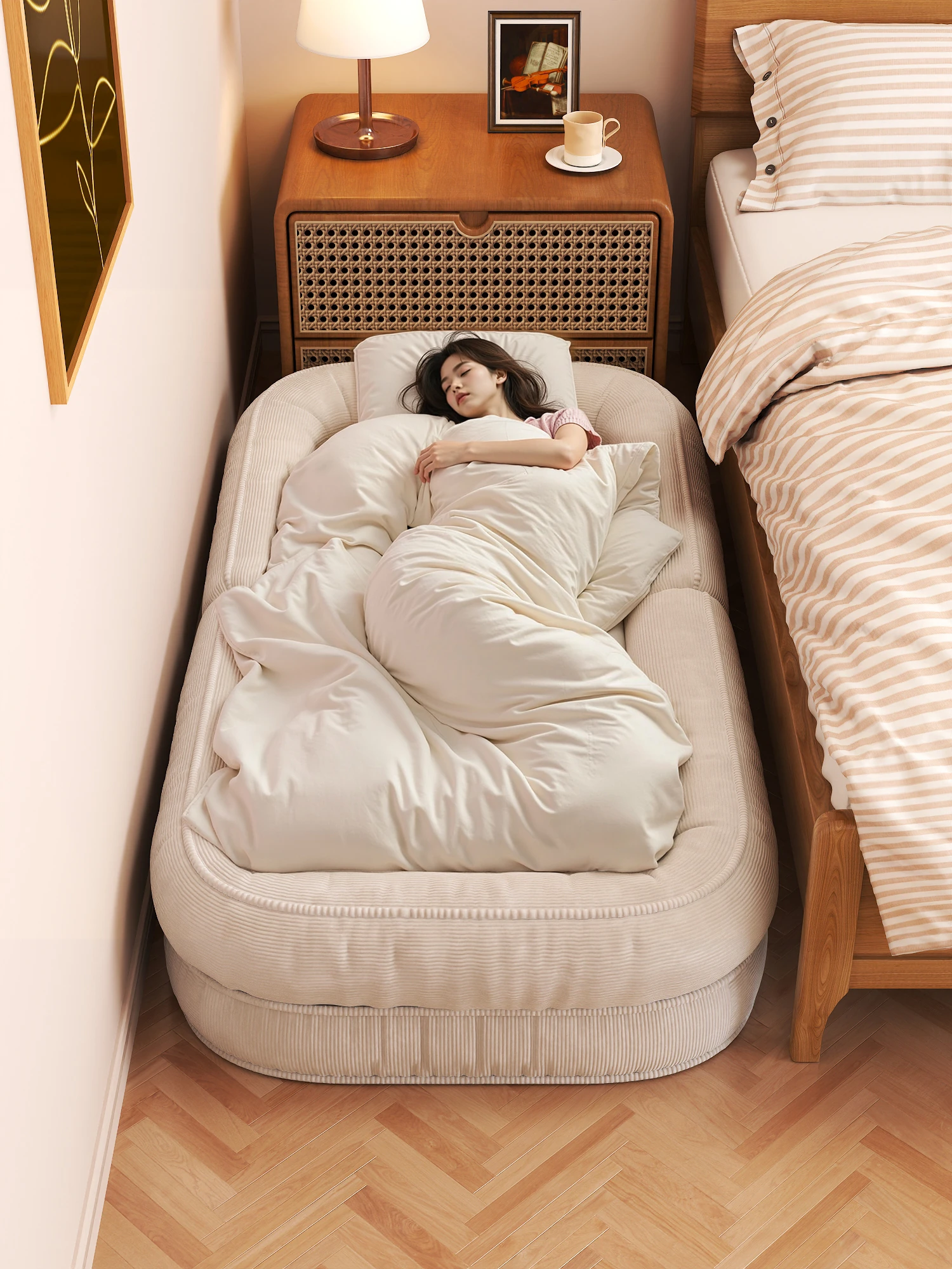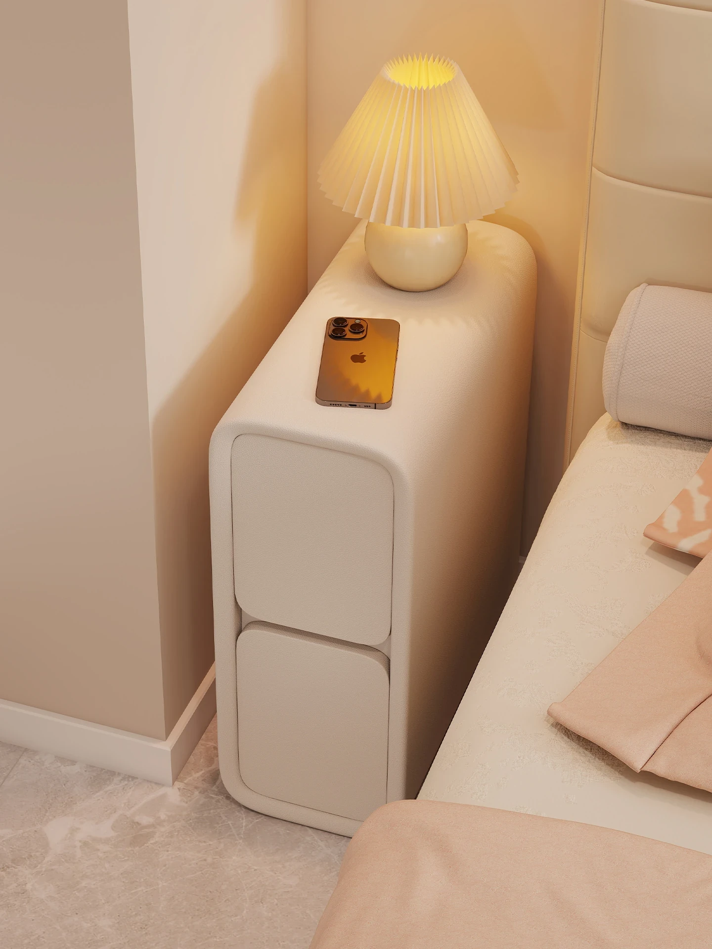 Narrow 20CM Bedside Cabinet - Luxury Small Solid Wood Storage Nightstand for Home Bedroom, Creamy Style, Perfect for Tight Spaces