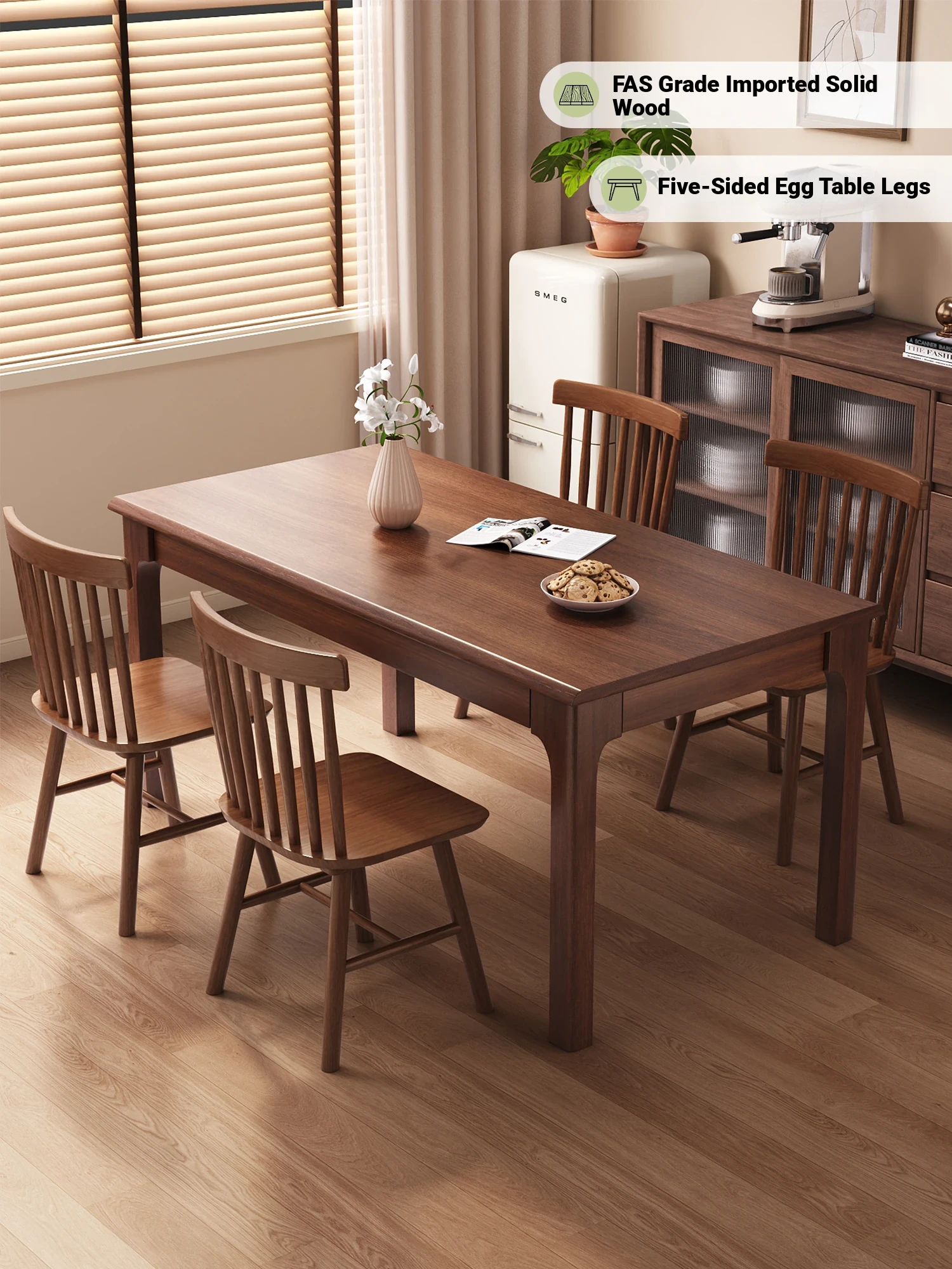 Solid Wood Dining Table for Small Living Spaces - Walnut Finish, Minimalist Rectangular Design, Perfect for Family Meals with Matching Chairs