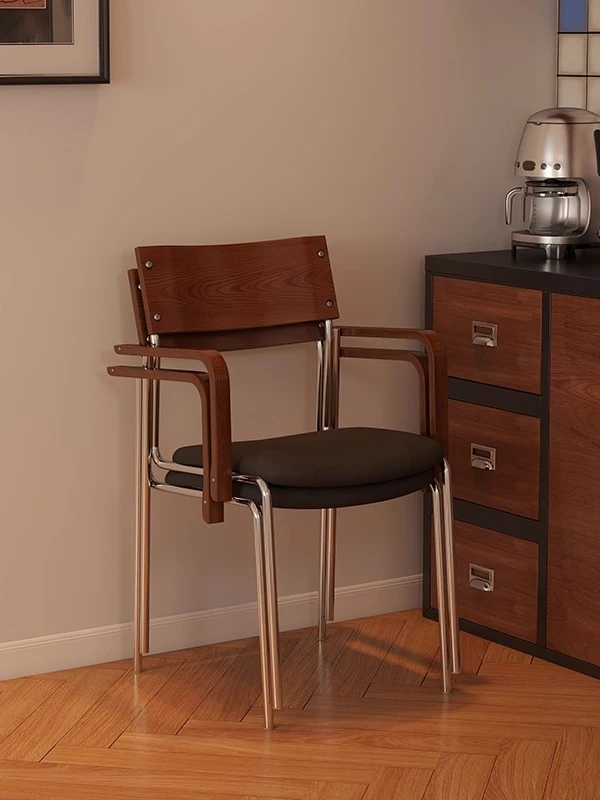 Bauhaus Minimalist Dining Table and Chair Set - Italian Solid Wood Stackable Leisure Dining Chairs with Stainless Steel Accents for a Chic Restaurant or Café Experience.