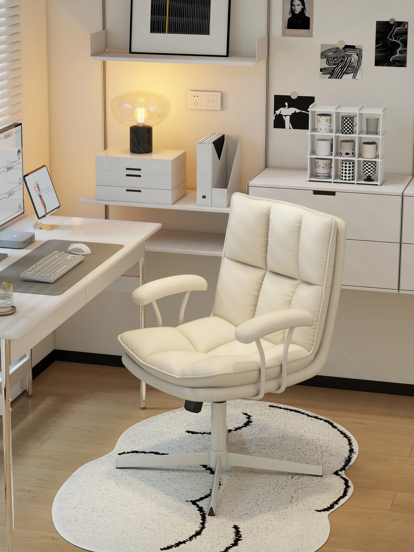 Comfortable Home Office Chair for Long Hours - Stylish Swivel Chair for Study, Bedroom, and Makeup; Ergonomic Backrest for Enhanced Support and Style