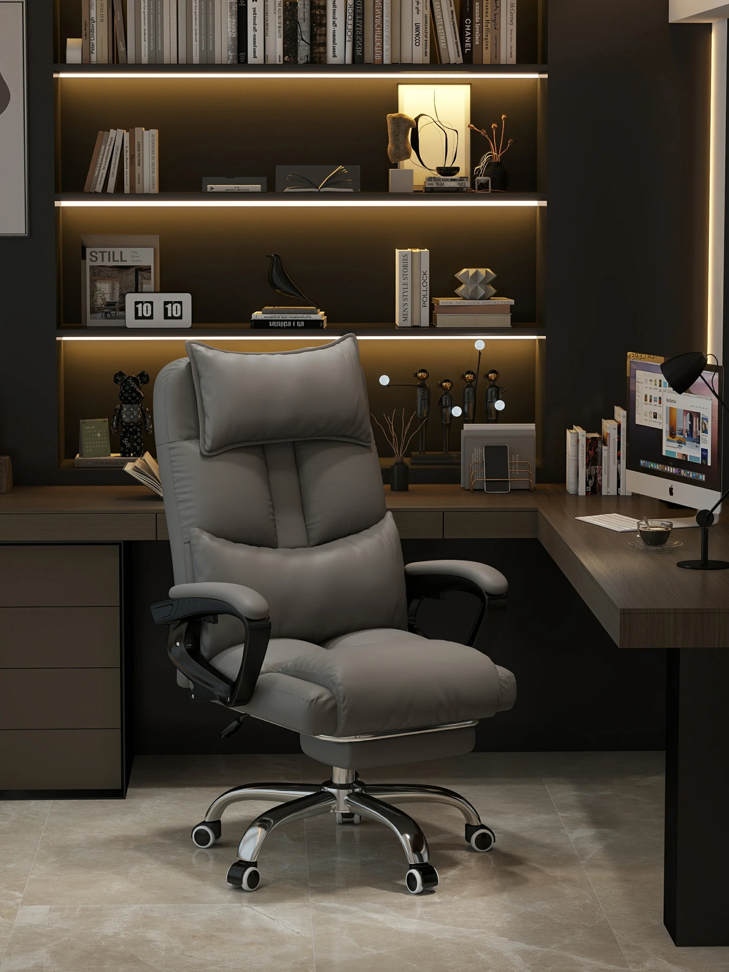 Ergonomic Office Chair for Home and Work - Comfortable Swivel Desk Chair with Reclining Backrest, Ideal for Long Hours of Sitting, Perfect for Study or Relaxation