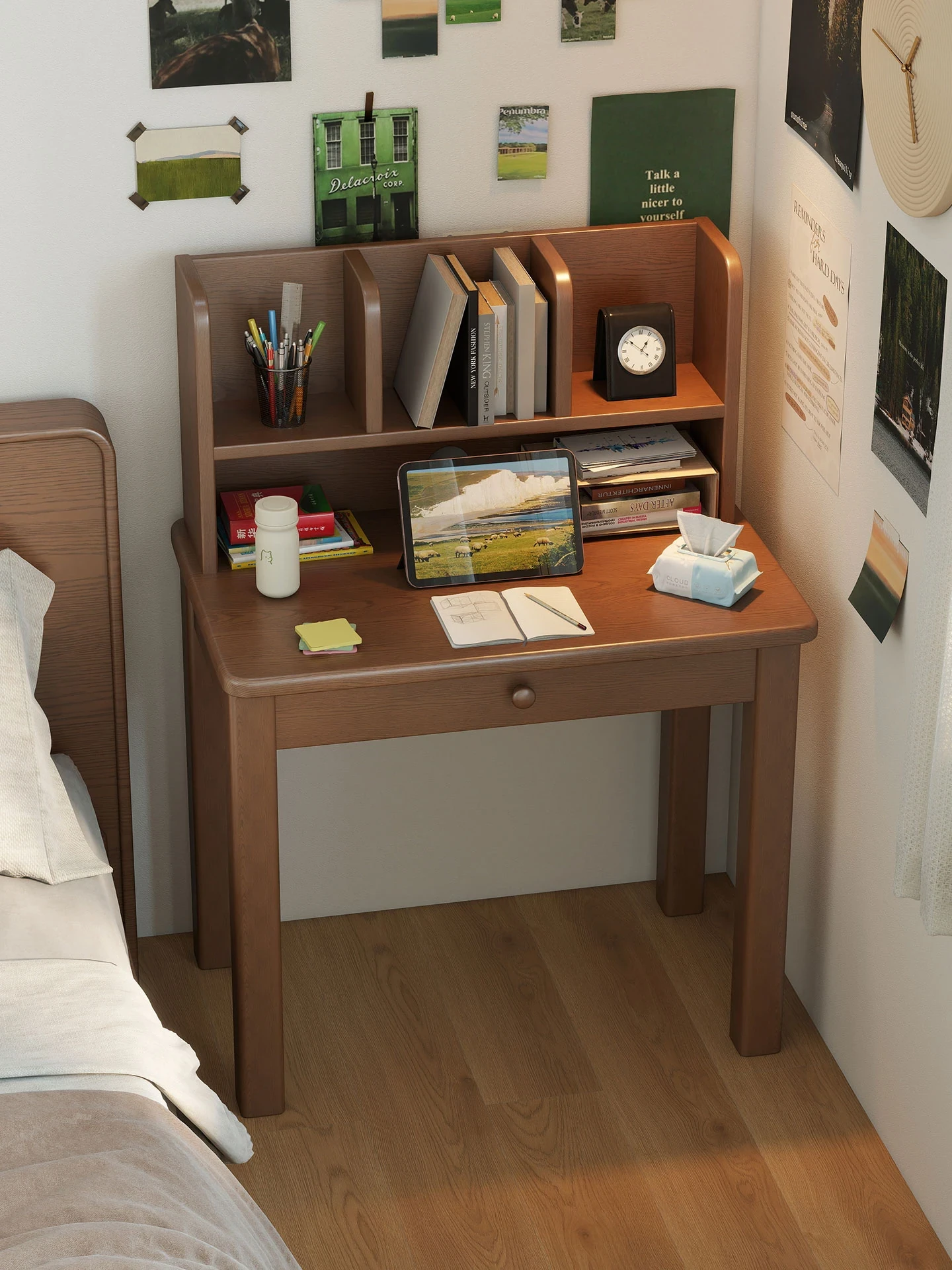 Solid Wood Ultra-Narrow Nightstand and Study Desk for Small Bedrooms - Perfect for Students! Compact Design for High School and College Use, Ideal for Limited Spaces.
