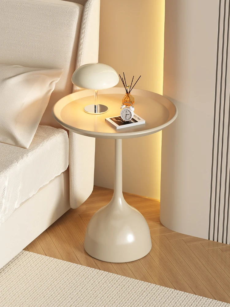 Modern Minimalist Iron Bedside Table - Compact and Mobile Cream-Colored Nightstand, Perfect for Creative Storage Solutions in Your Bedroom.
