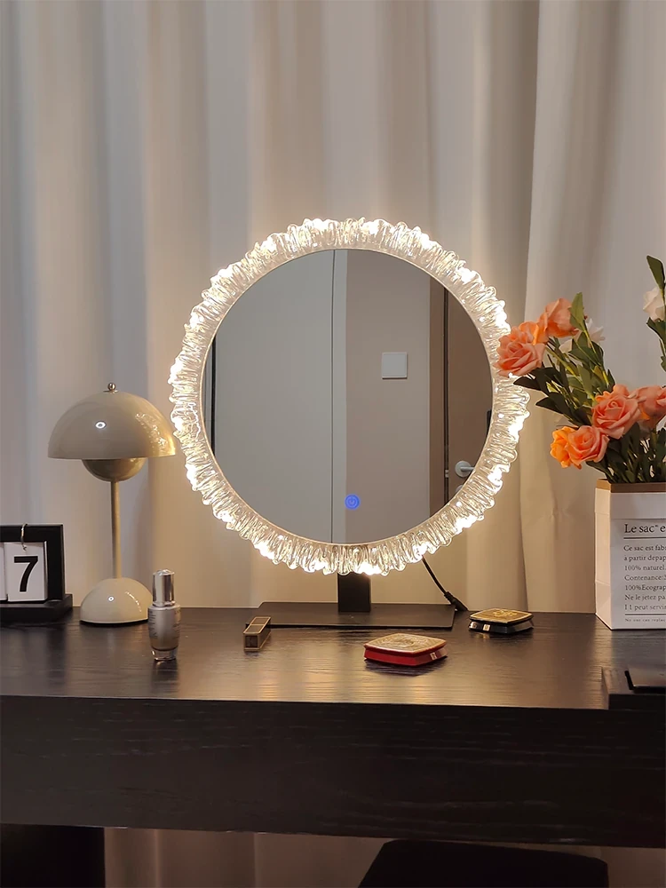 Trendy LED Makeup Mirror with Light - Luxurious Smart Vanity Mirror for Women, Perfect for Bedroom and Dressing Table, Elegant Desktop Design
