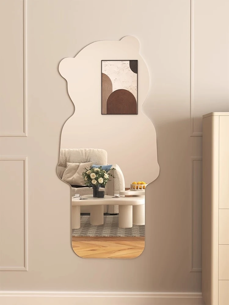Adorable Bear Acrylic Full-Length Wall-Mounted Dressing Mirror - Self-Adhesive Soft Mirror for Bedroom, Unique Shaped Wardrobe Try-On Mirror, Perfect for Home Use