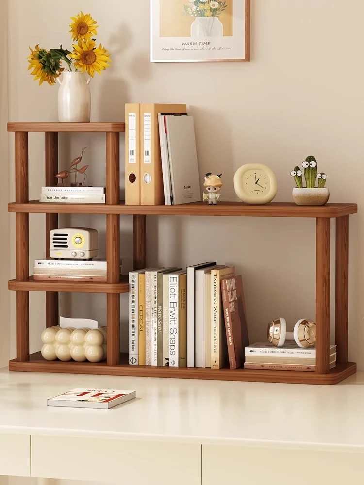 Stylish Multi-Tier Wooden Desktop Bookshelf - Space-Saving Corner Storage Rack for Office, Perfect for Organizing Your Desk with Elegance and Functionality!