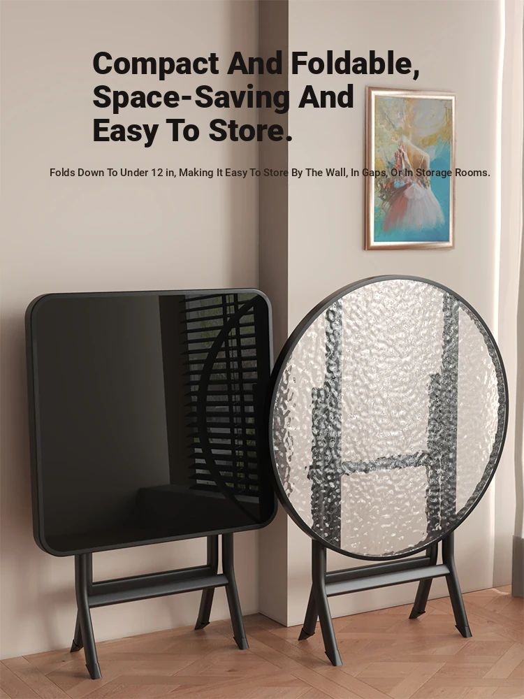 Compact Folding Glass Dining Table for Small Spaces - Perfect for Balconies and Outdoor Dining, Ideal for Family Gatherings and Card Games