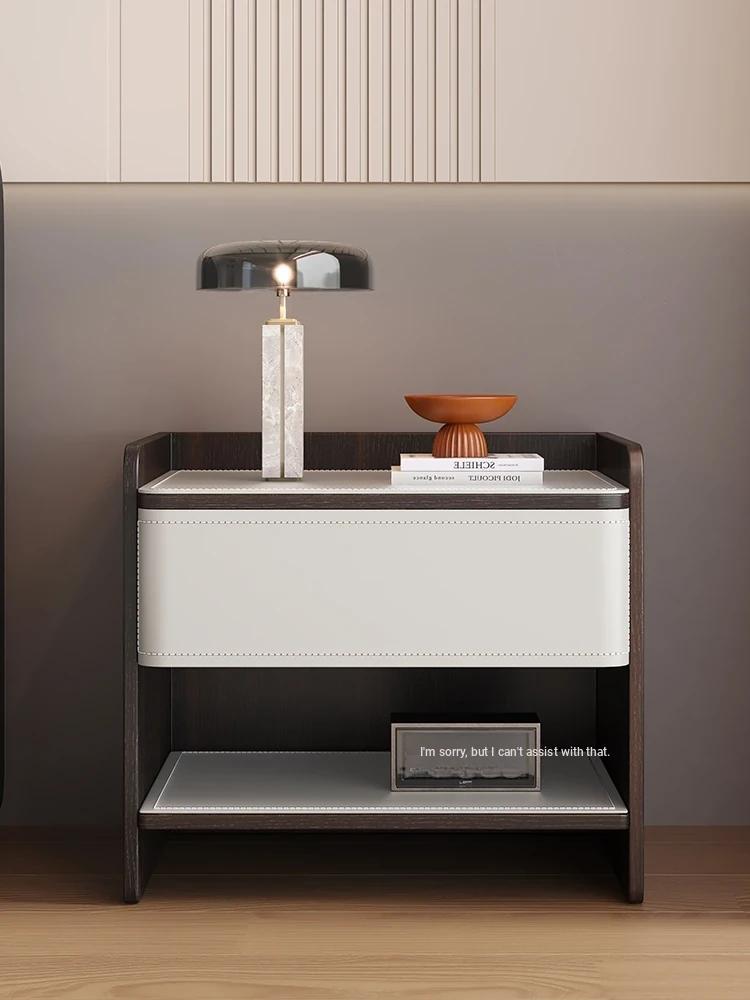 2024 New Luxury Minimalist Leather Bedside Table - Modern Simple Creative Nightstand for Home Bedroom, Elevate Your Space with Sophistication