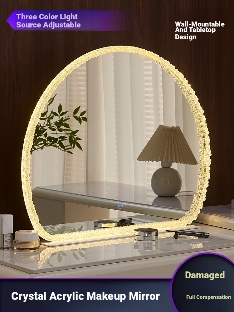 Smart LED Makeup Mirror with Light – Large Desktop Vanity Mirror for Home, Ideal for Girls' Bedrooms, Perfect for Ins-style Makeup Station