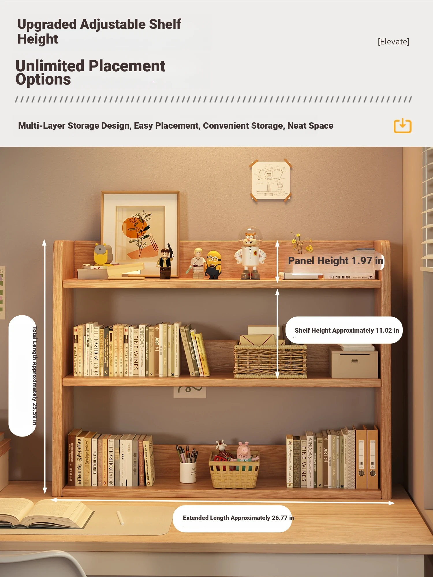 Solid Wood Desktop Bookshelf - Multi-Layer Storage Rack for Students and Home Use, Compact Corner Organizer, Simple Design for Efficient Space Management.