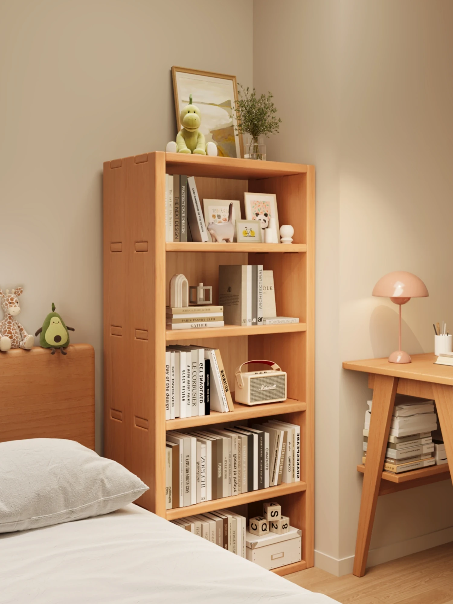 Solid Wood Bookshelf with Mortise and Tenon Design - Pine Wood Floor-standing Storage Cabinet for Bedroom and Living Room, Perfect for Organizing Books and Decorative Items.