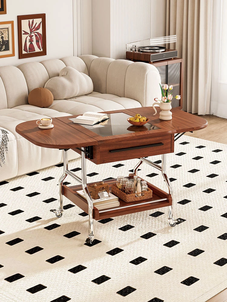 2024 New Vintage-Style Folding Coffee Table - Movable Sofa Side Table for Living Room, Retro Serving Cart and Storage Shelf, Perfect for Home Use