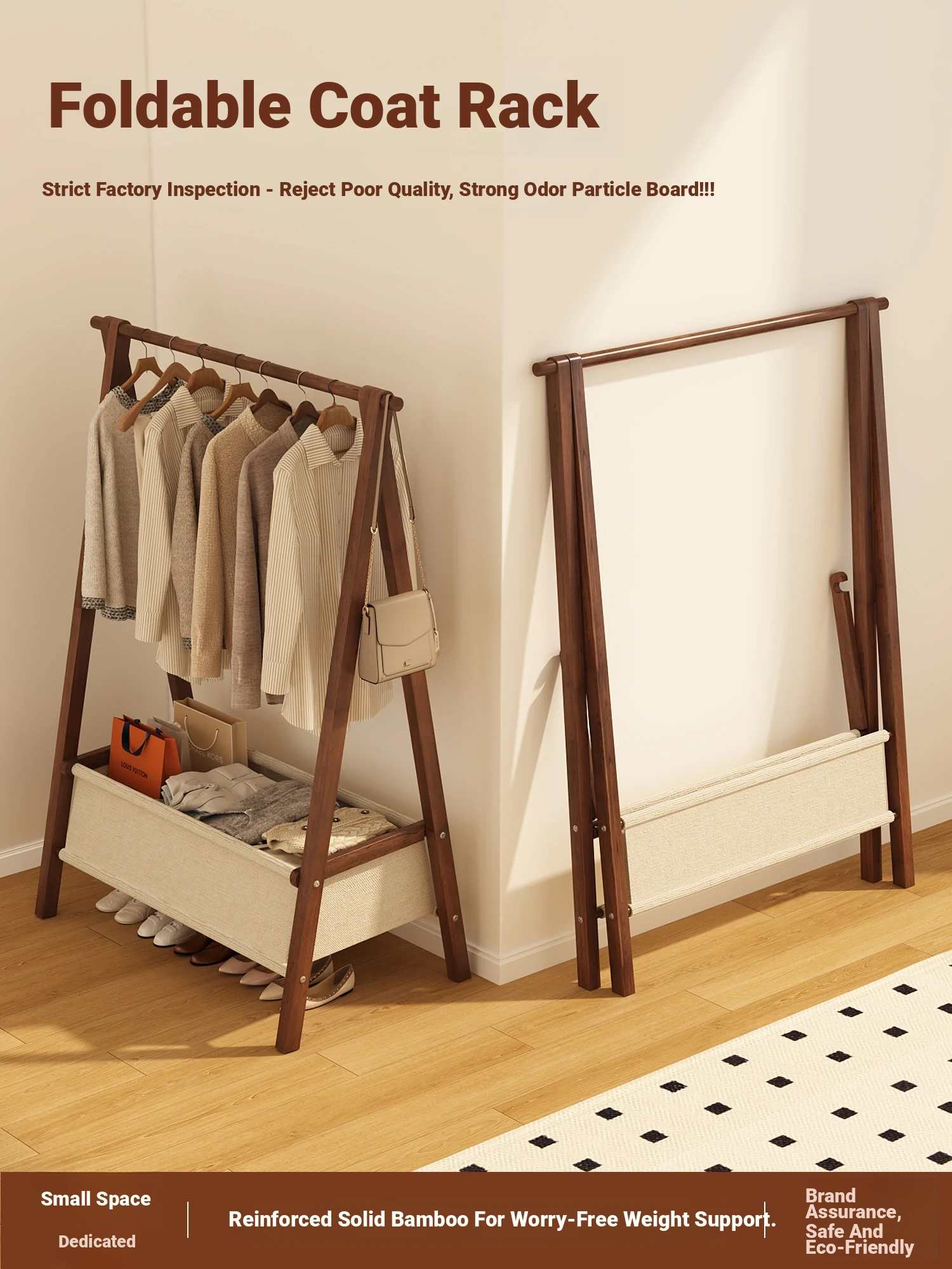 Foldable Wooden Clothes Rack - Stylish Free-Standing Hanger for Bedroom, Laundry, and Storage - Perfect for Organizing Clothes and Hats in Any Room