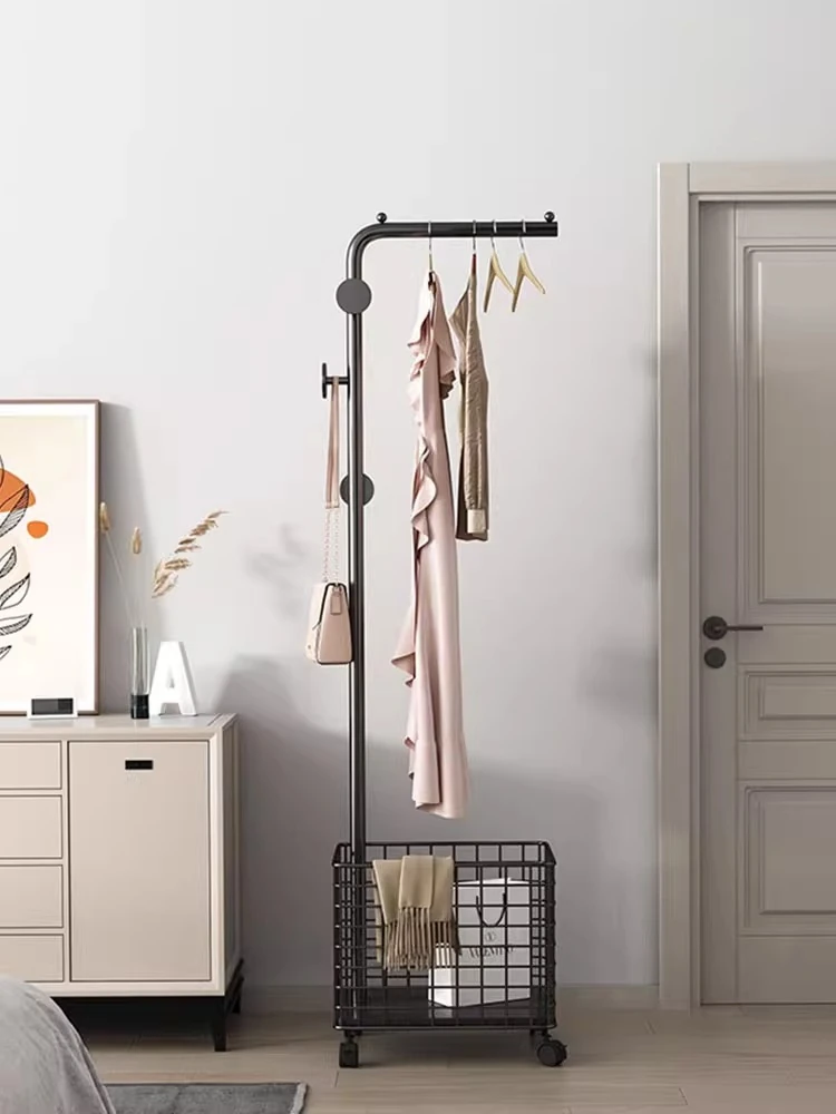 Space-Saving Floor-Standing Metal Clothes Rack - Easy Storage Solution for Bedroom and Living Room, Mobile and Convenient for Home Use