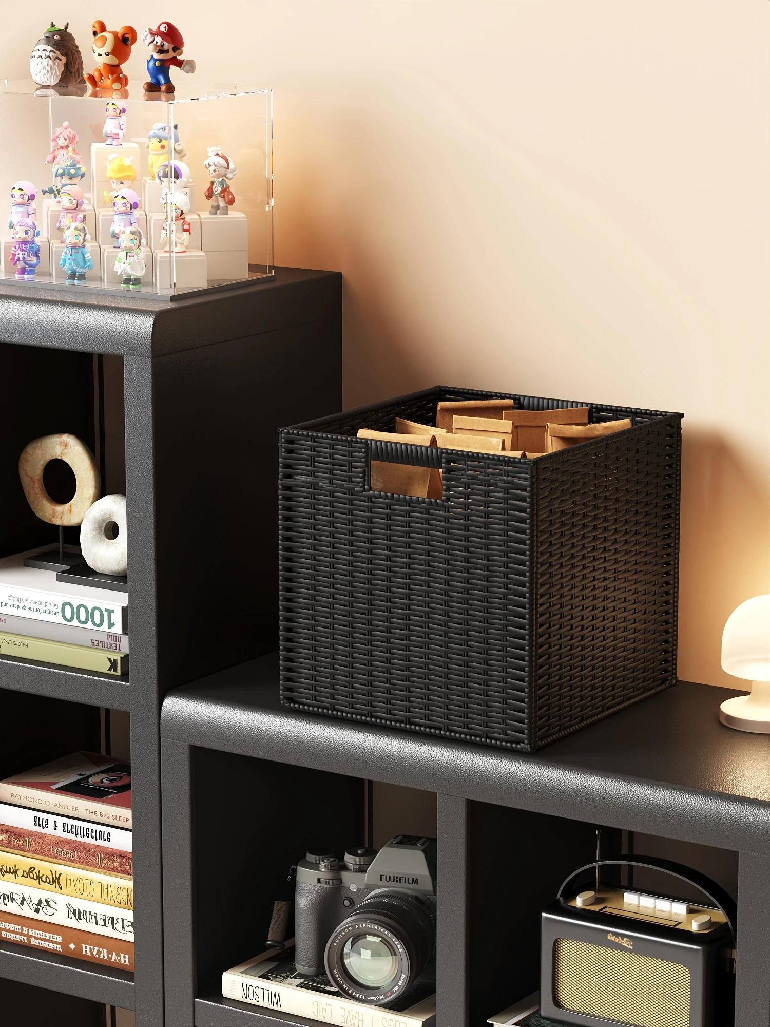 Large Capacity Woven Storage Basket - Stylish Rattan Storage Box for Organizing Your Books and Essentials - Versatile Open Shelf Drawer Organizer for a Clutter-Free Home