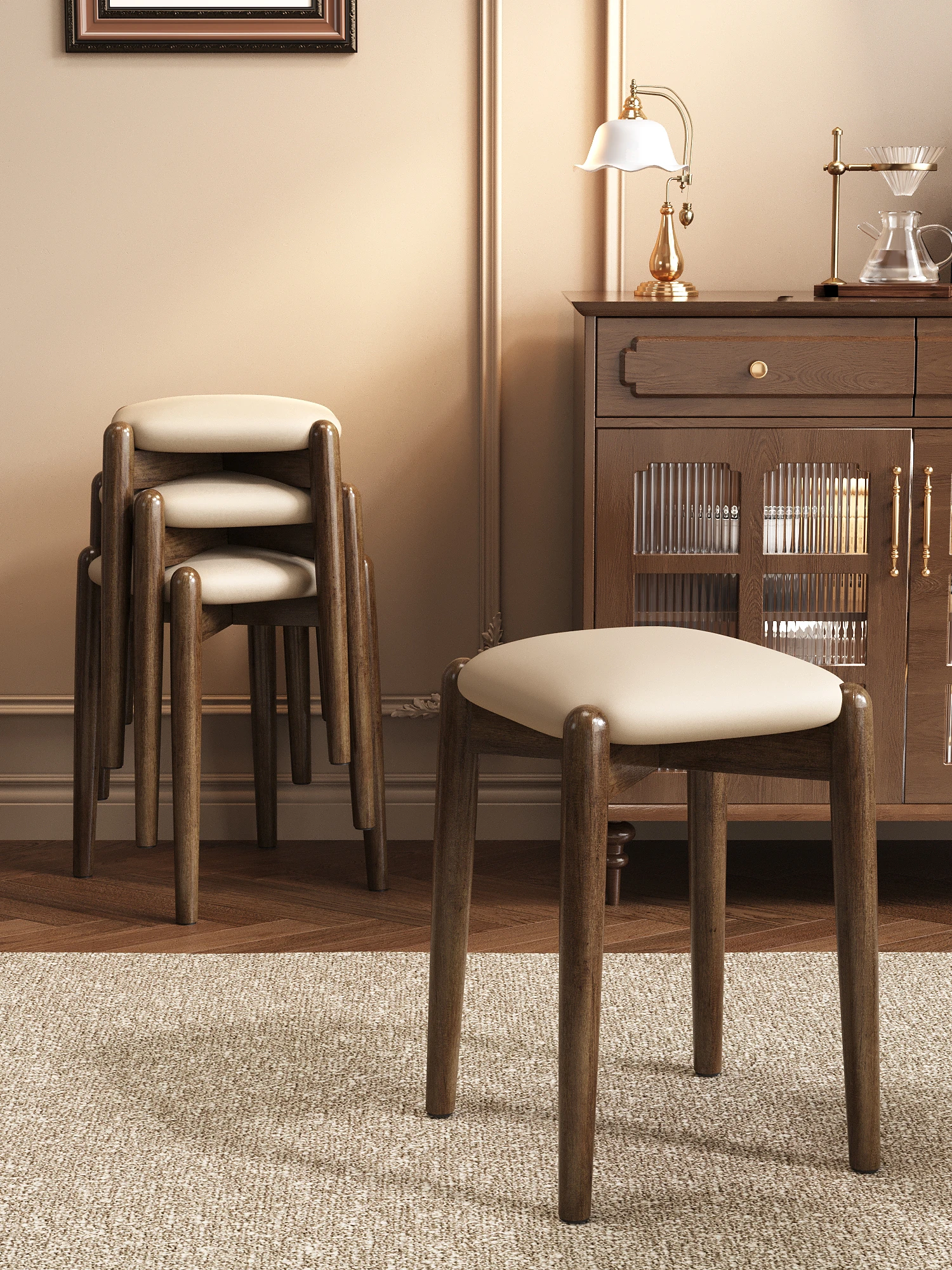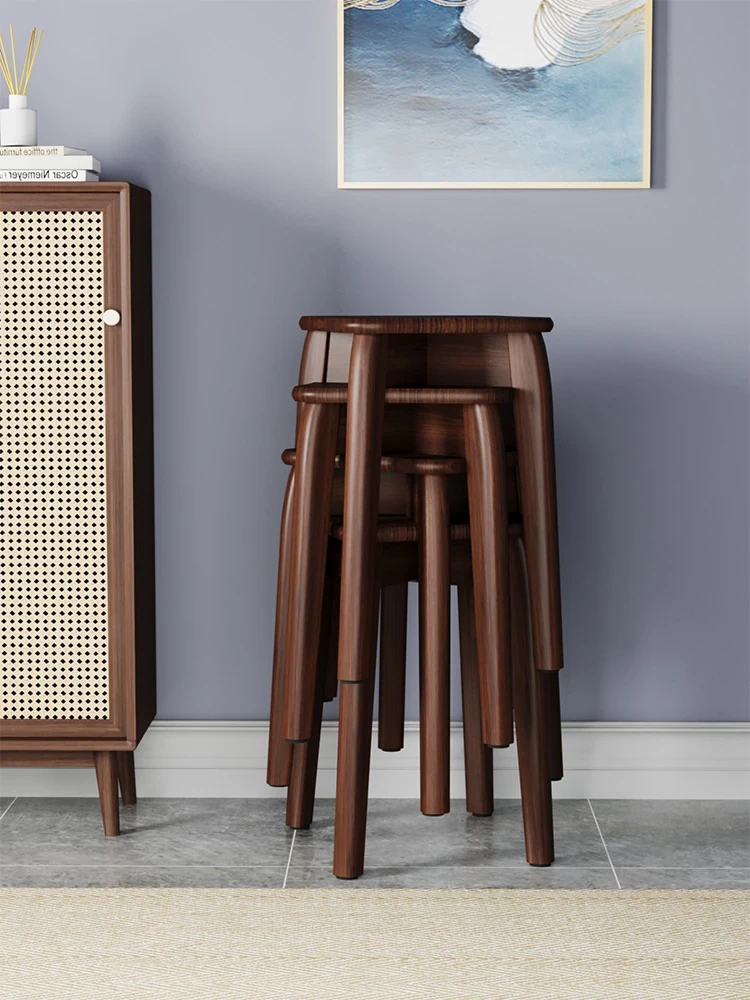 Stylish Chinese Solid Wood Stools - Stackable, Durable, and Elegant for Home Use - Perfect Spare Seating for Guests with High Aesthetic Appeal