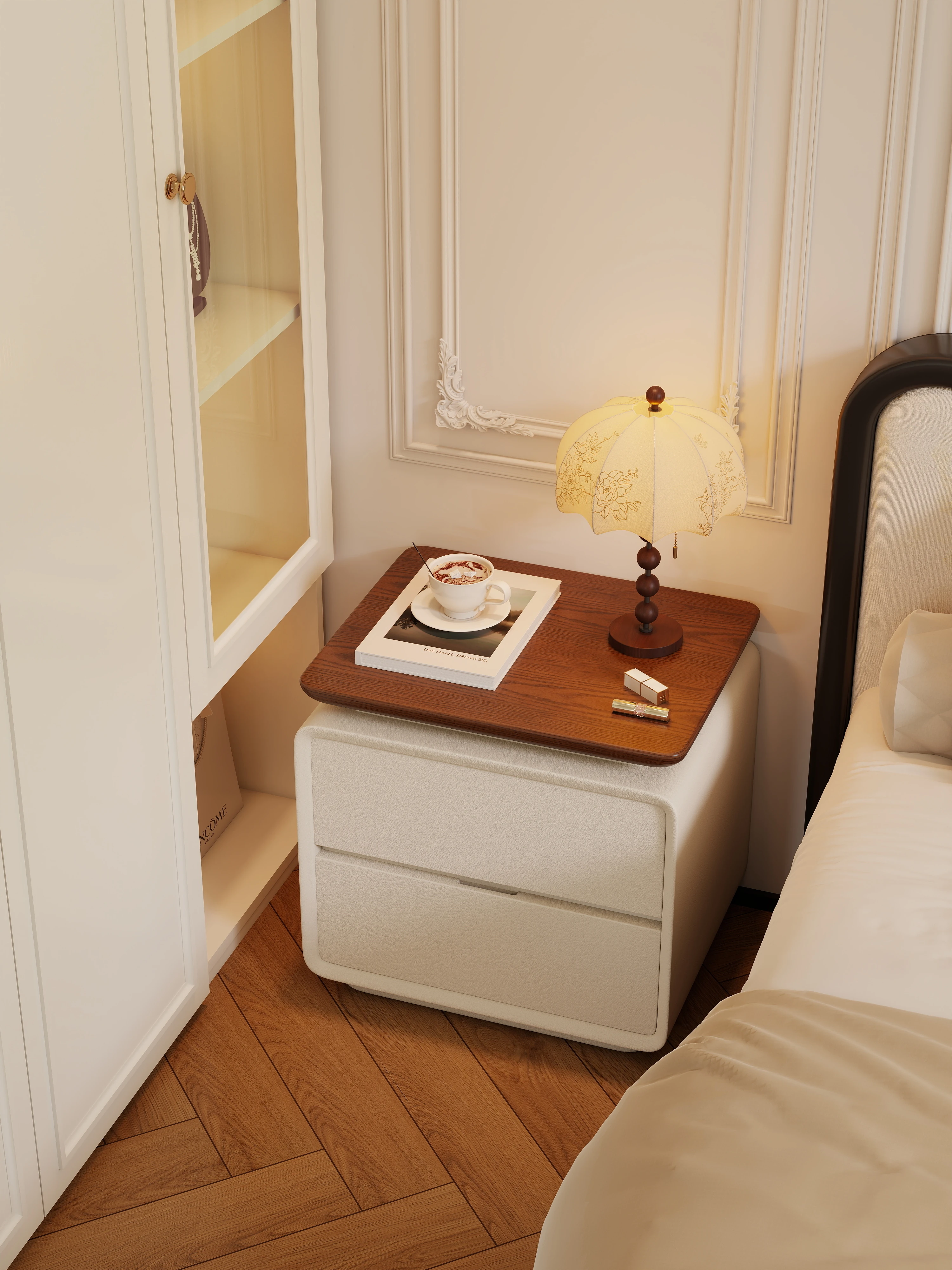French Cream Style Solid Wood Nightstand – Compact Bedside Storage Cabinet for Home Bedroom, Perfect Corner Organizer for Your Space
