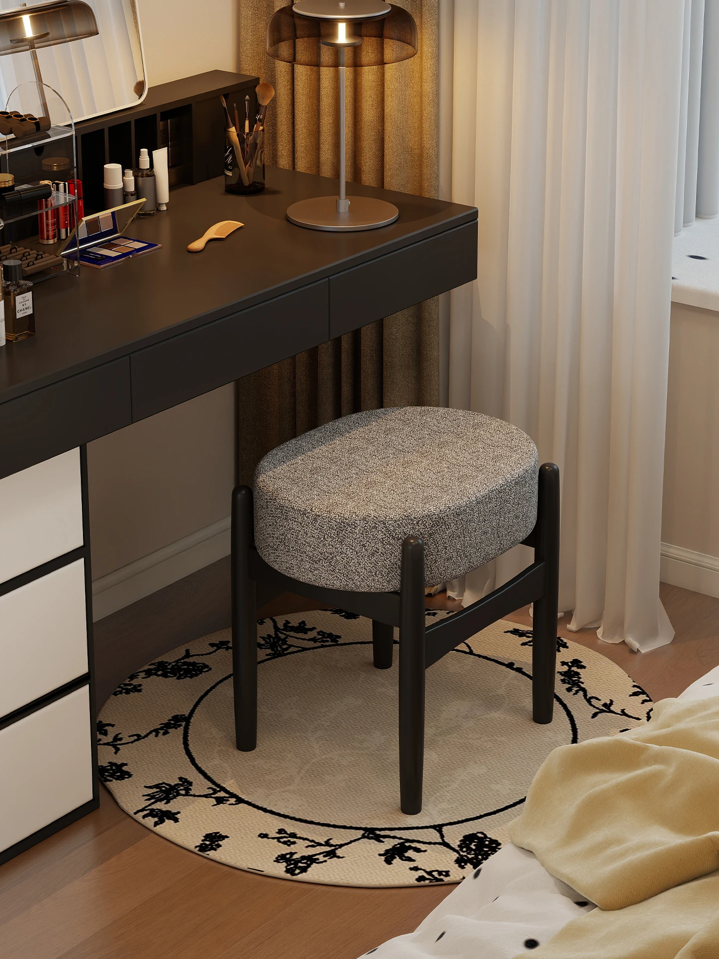 Stylish Creative Makeup Chair - Rotating Vanity Stool for Beauty and Nail Care, Elegant Bedroom Accent Chair, Perfect for Personal Grooming and Relaxation.