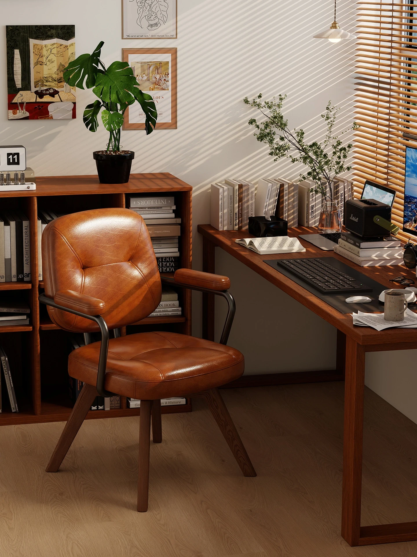 Comfortable Home Office Chair - Rotatable Desk Chair for Study and Bedroom, Vintage Luxury Design with High-Quality Backrest for Long Hours of Sitting