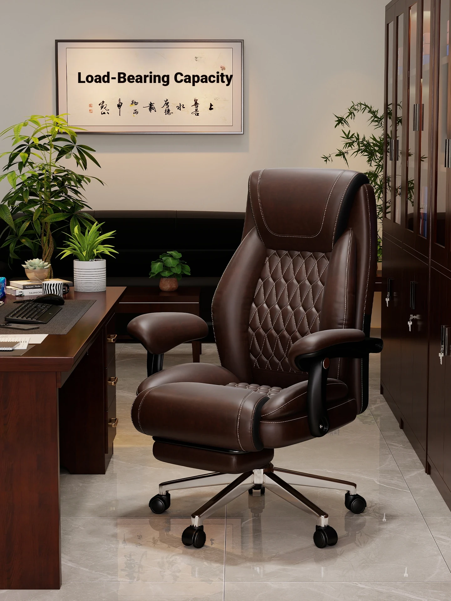Genuine Leather Executive Chair for Home Office - Comfortable Reclining Desk Seat for Long Hours, Perfect for Study and Relaxation
