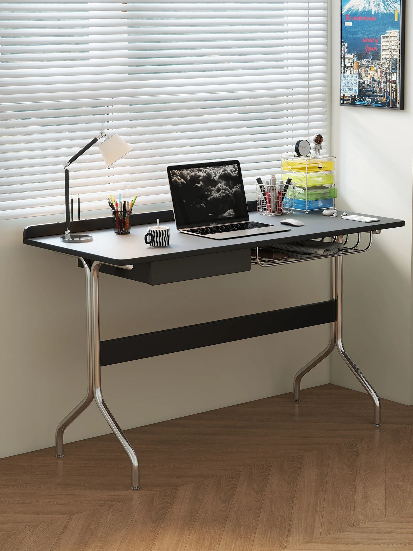 Bauhaus Solid Wood Desk - Stylish Home Office Workstation, Compact Stainless Steel Design, Nordic Writing Table for Modern Living Spaces