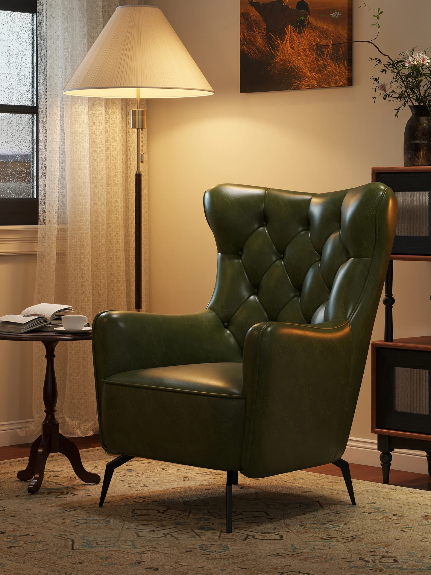 Vintage Leather Armchair - American-Style High Back Sofa Chair for Living Room or Study - Perfect for Relaxation and Comfort