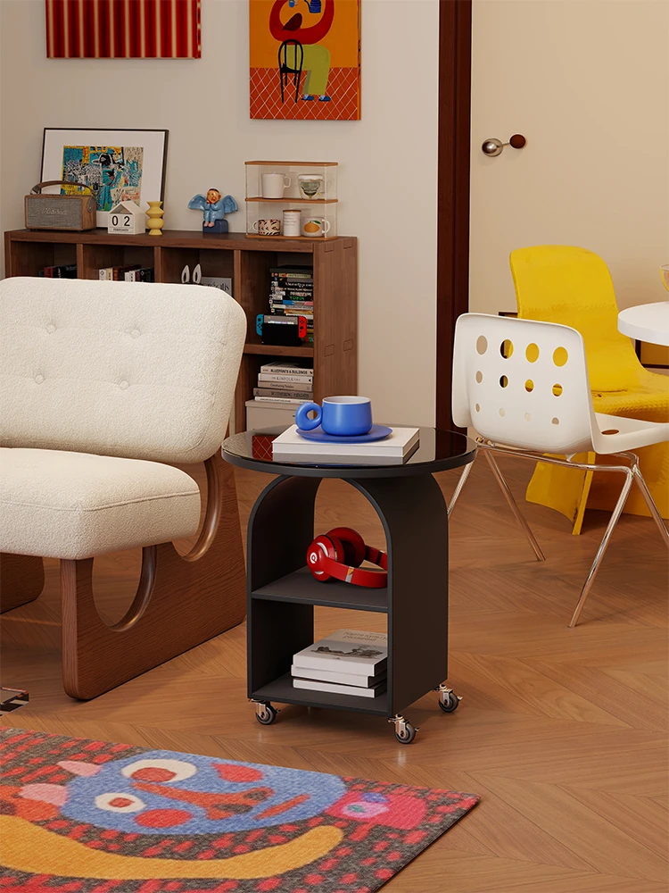 Creative Movable Side Table with Wheels - Glass Coffee Table for Living Room, Versatile Nightstand and Storage Solution