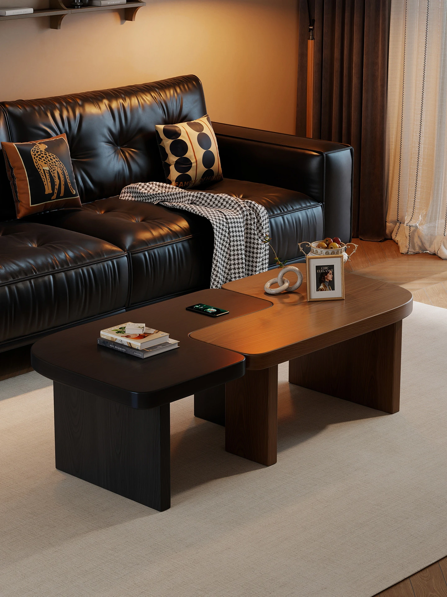 Unique Designer Solid Wood Coffee Table – Minimalist Irregular Shape for Living Room, Compact Spaces, Creative Guesthouses, and Balcony Use