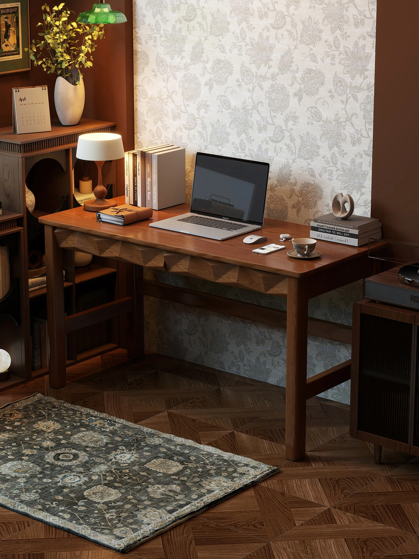 French Vintage Solid Wood Writing Desk - Elegant European Style Computer Table with Double Drawers - Creative Antique Study Desk for Modern Learning