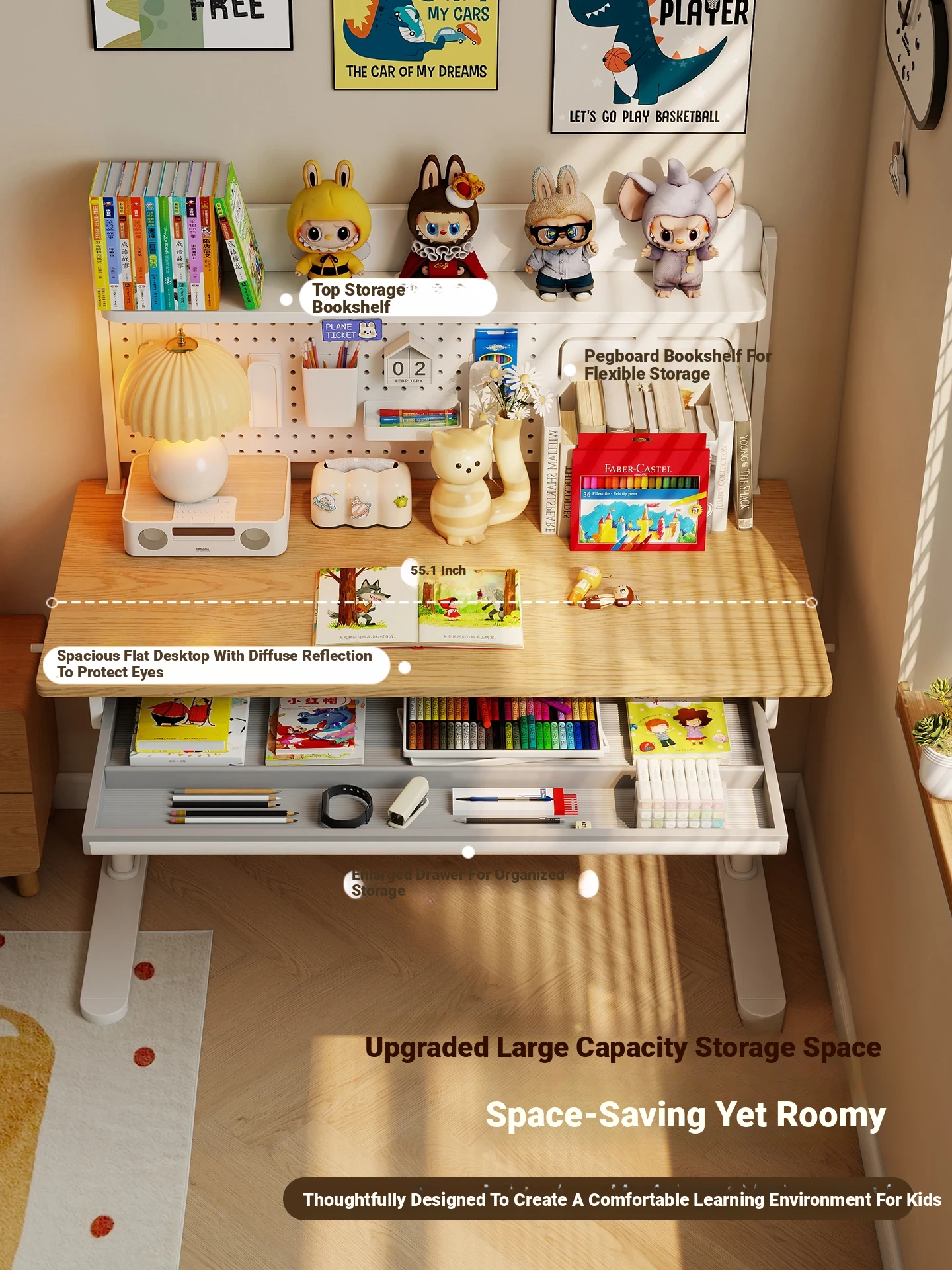 Adjustable Solid Wood Study Desk for Kids - Ideal Writing Table for Primary and Secondary School Students, Home Use with Pegboard Design for Computer and Study Needs