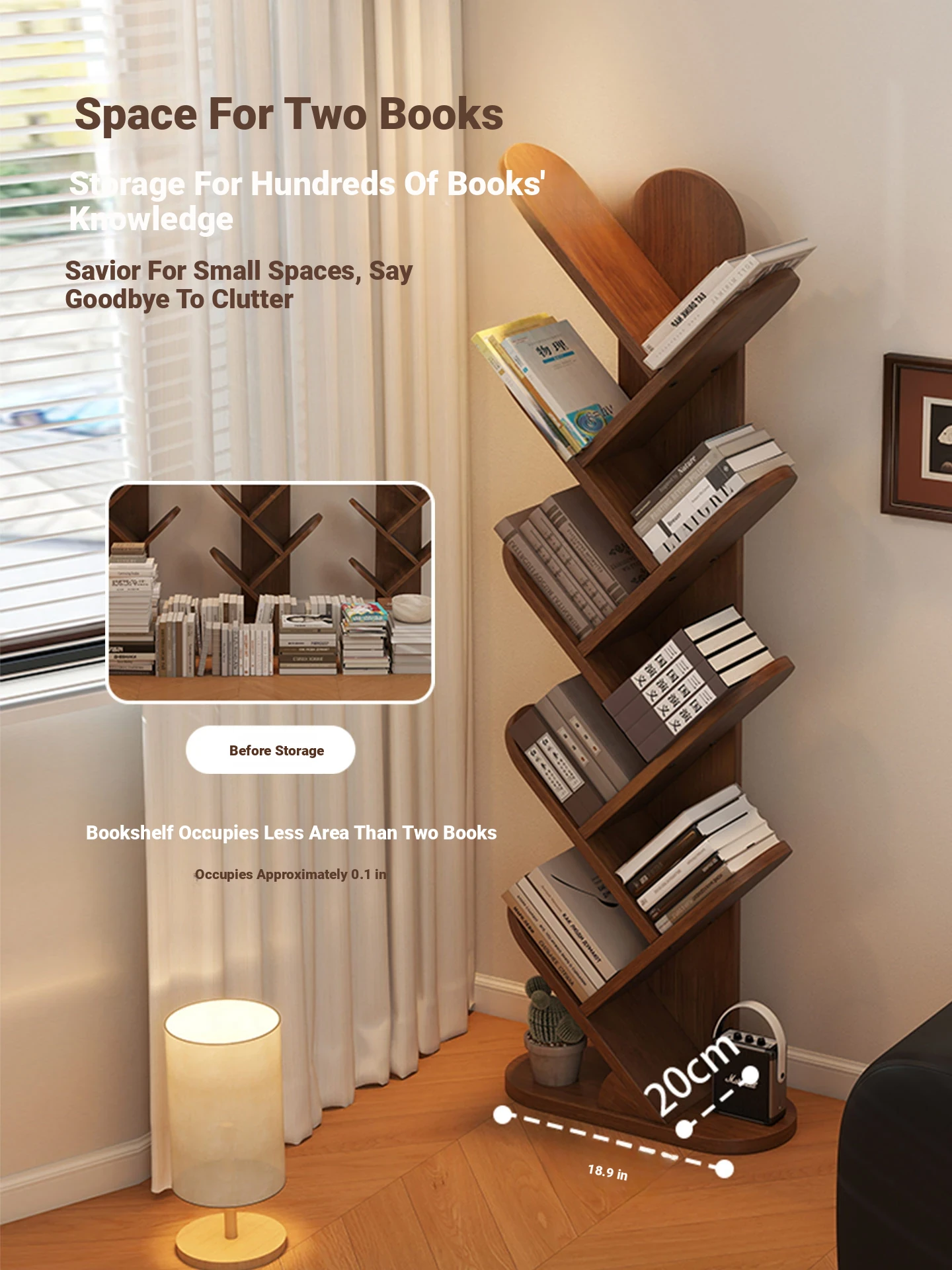 Solid Wood Tree-Shaped Bookshelf - Floor Standing Storage Rack for Living Room, Corner Space Saver, Multi-Layer Narrow Book Cabinet for Children's Picture Books