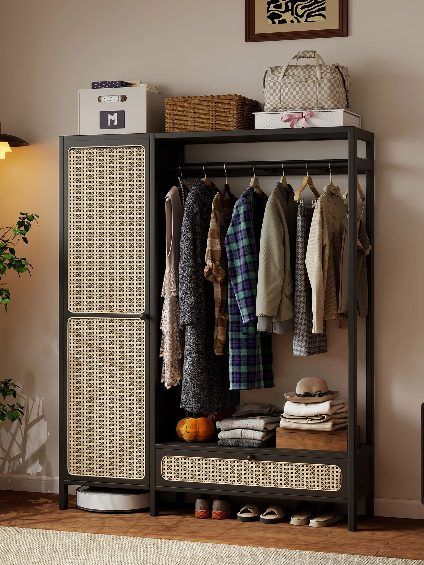 Vintage Wicker Coat Rack - Multifunctional Floor Hanger for Bedroom and Living Room, Retro Storage Organizer with Bohemian Style