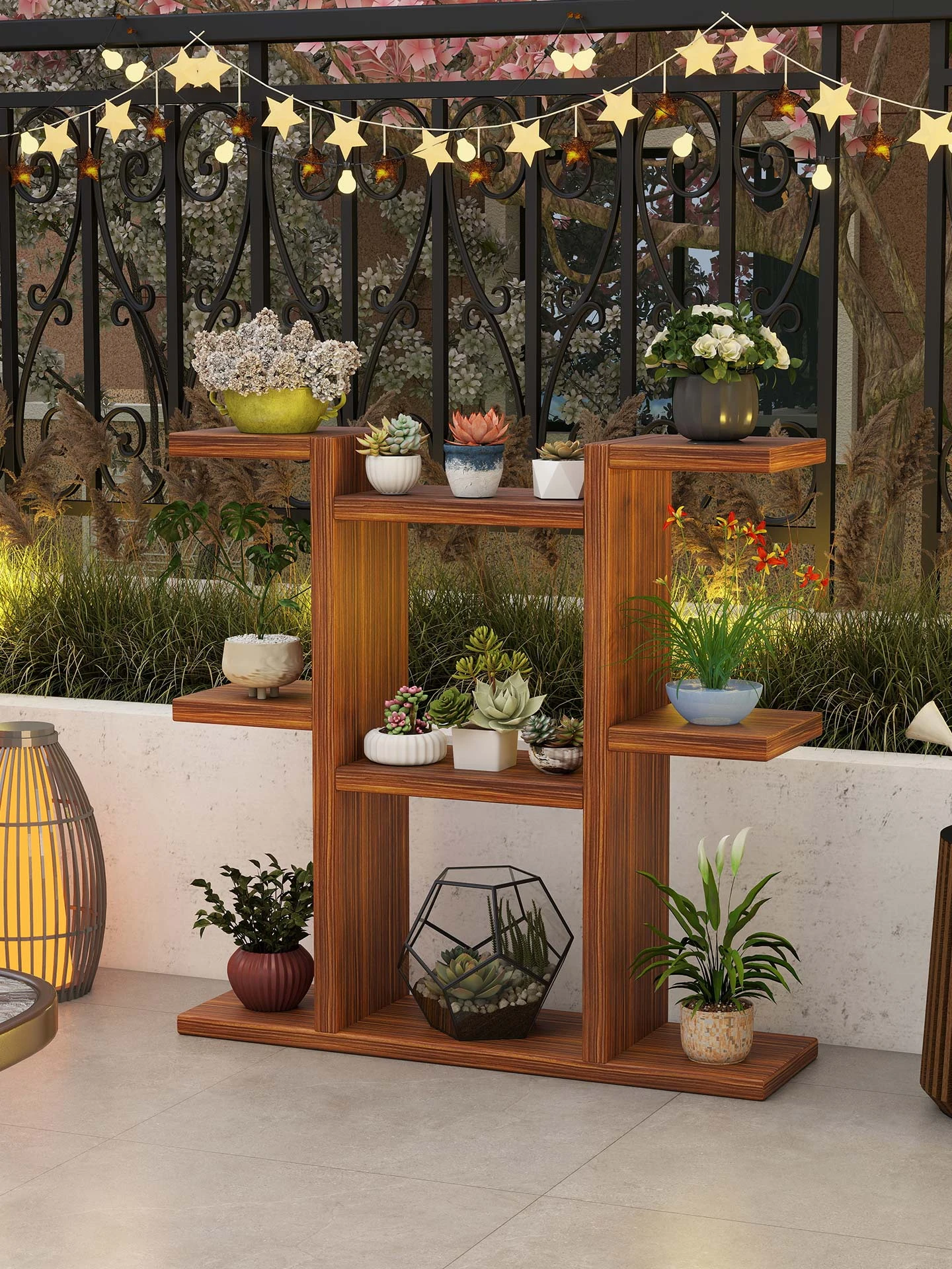 Stylish Indoor Wooden Plant Stand for Succulents - Space-Saving Multi-Tiered Desktop and Balcony Flower Pot Display Shelf