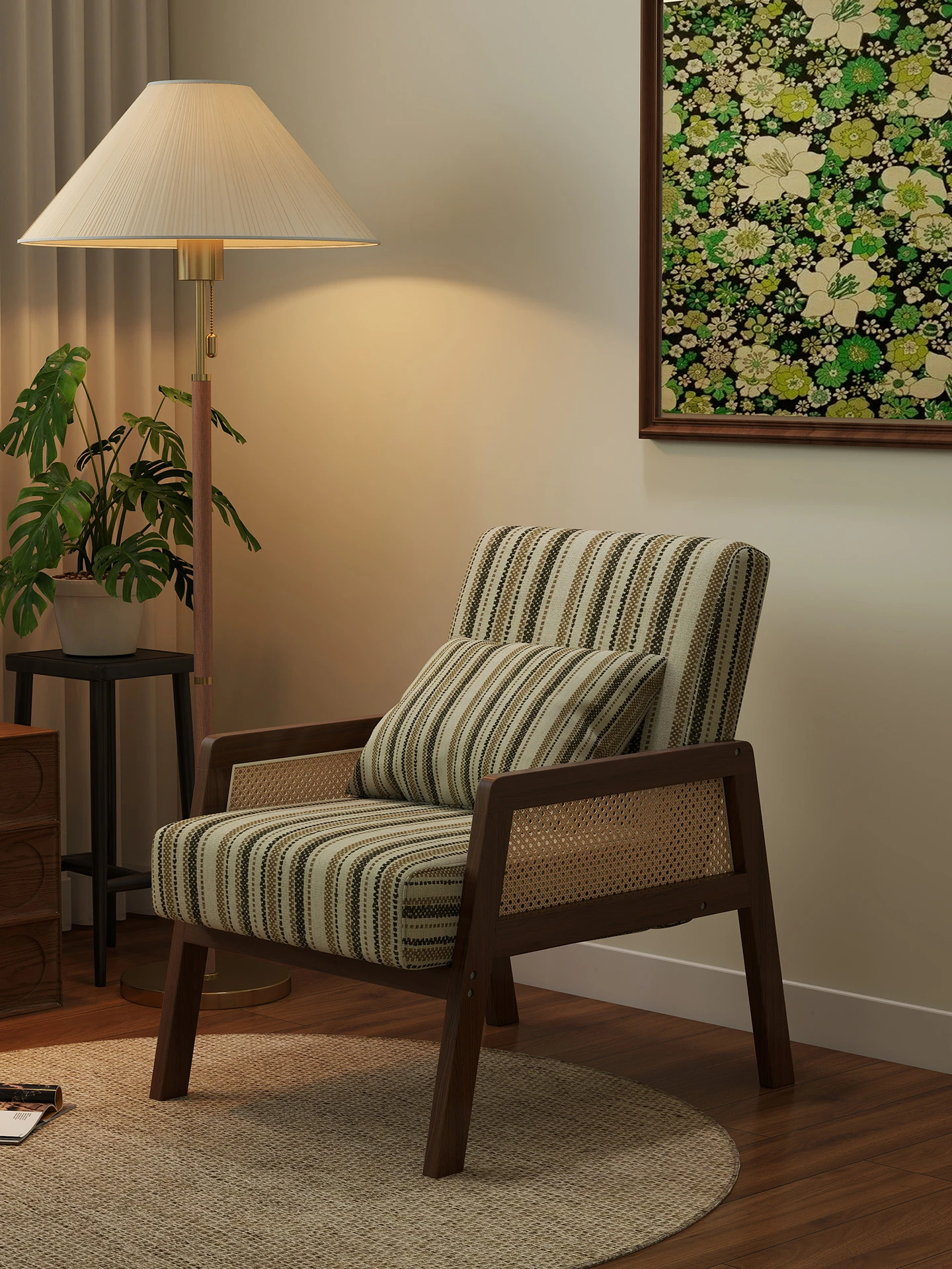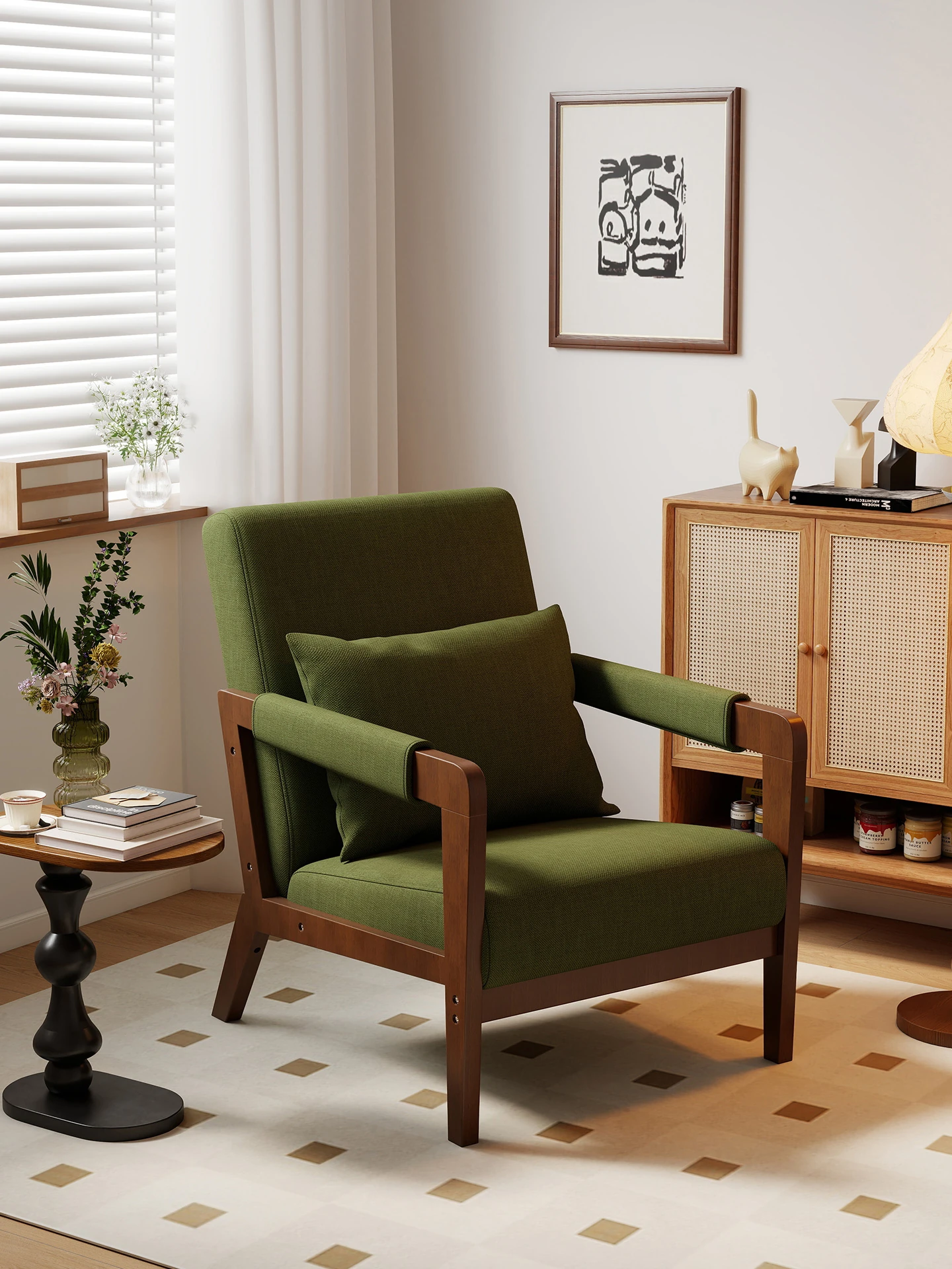 Vintage Solid Wood Single Sofa Chair - Mid-Century Modern Lounge Chair for Living Room, Study, Hotel, and Guesthouse with Comfortable Backrest