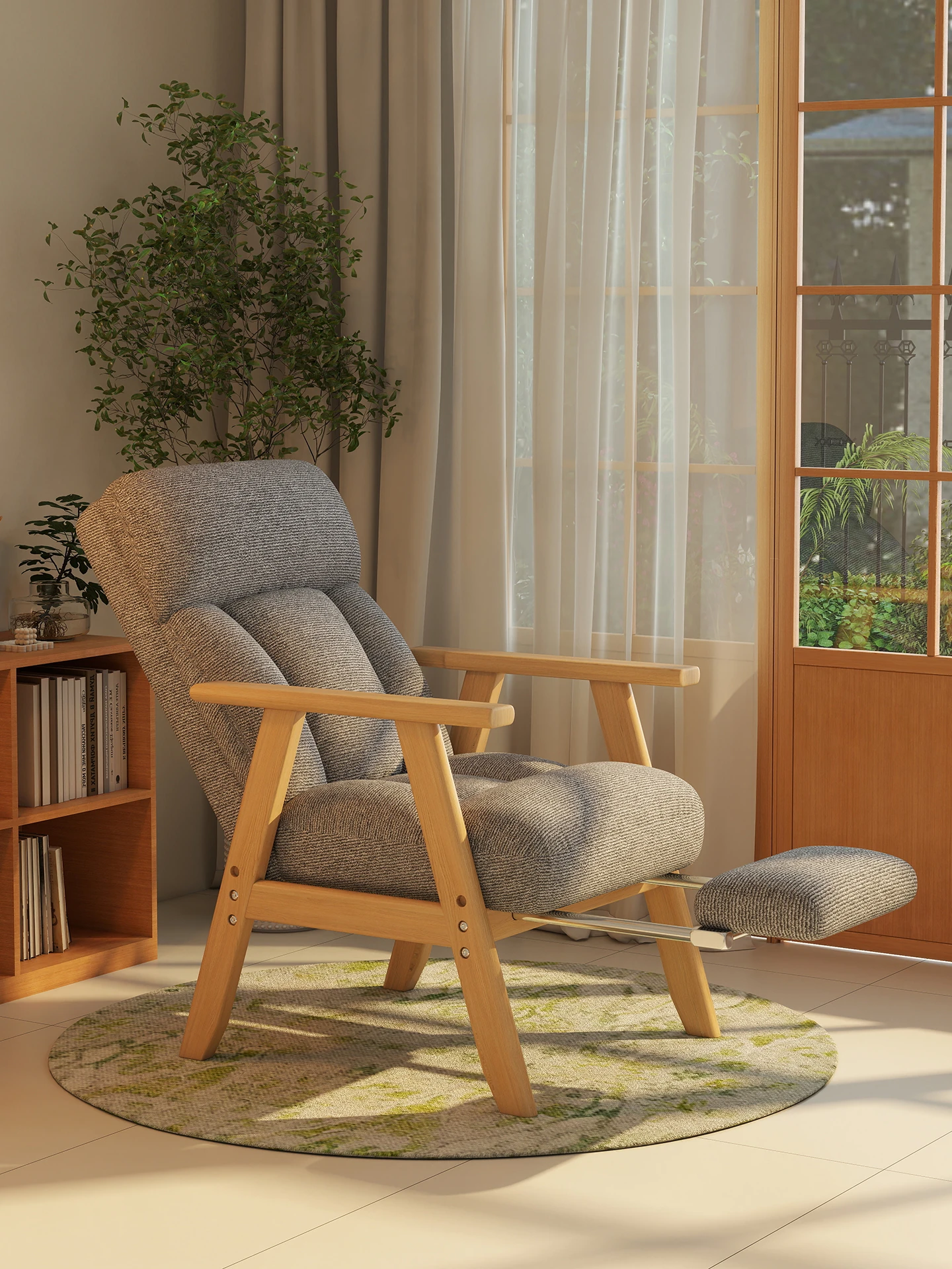 Lazy Person's Solid Wood Sofa Chair - Comfortable Reclining Single Sofa for Seniors, Perfect for Balcony Naps and Long Sitting, Ergonomic Back Support Chair