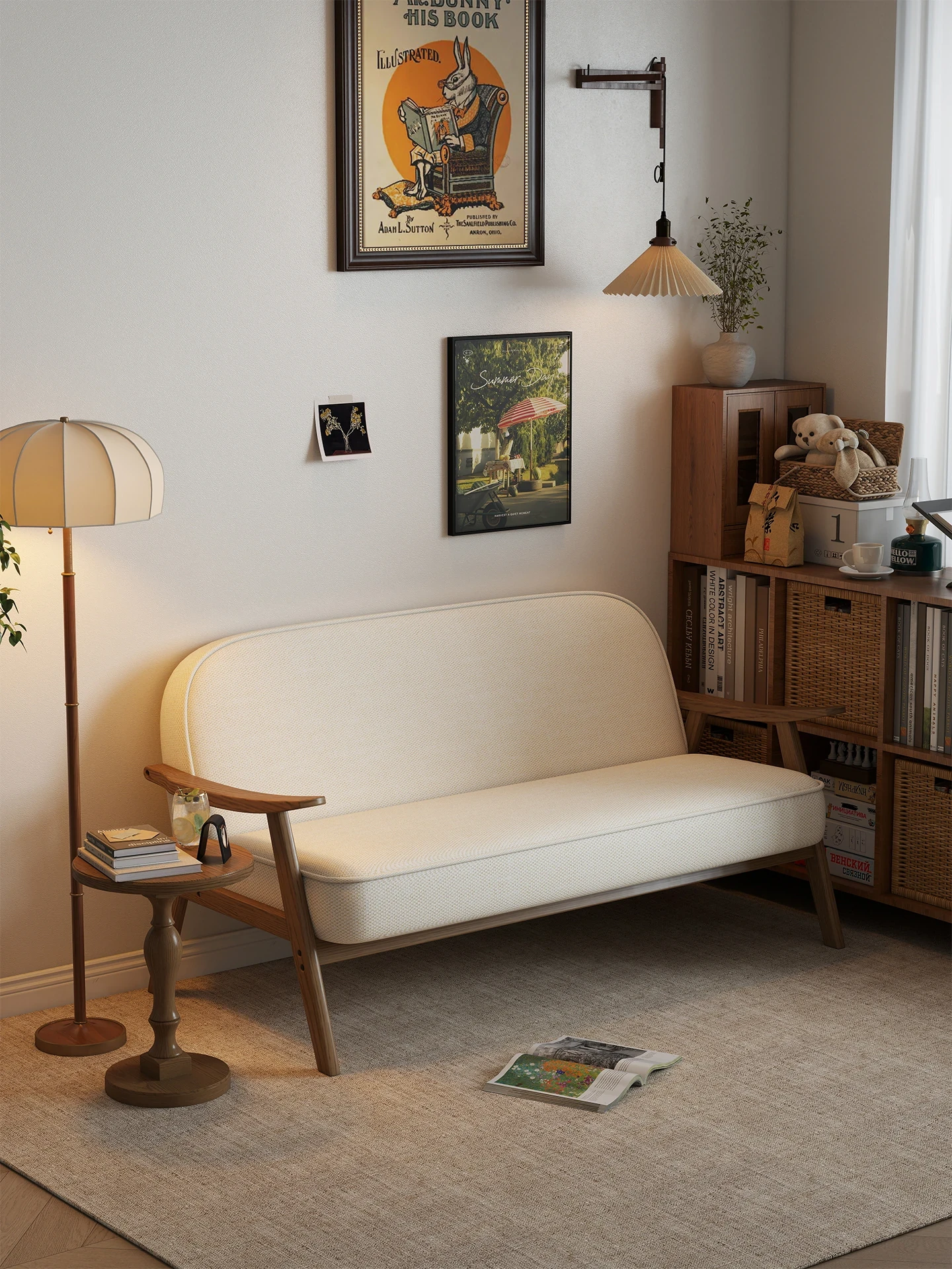 Vintage Double Fabric Sofa with Solid Wood Frame - Perfect for Small Living Rooms, Bedrooms, and Apartments. Ideal Space-Saving Solution for Cozy Accommodations!