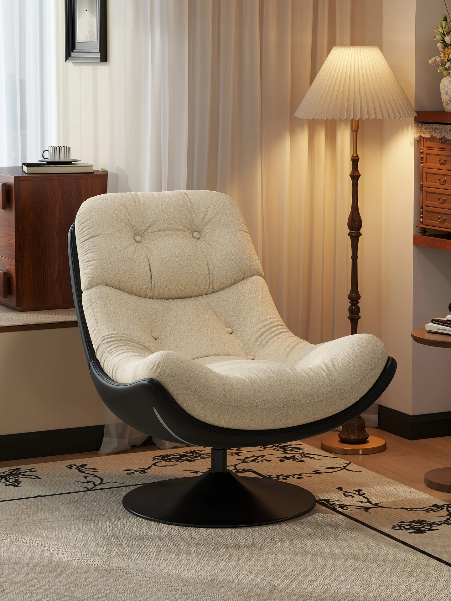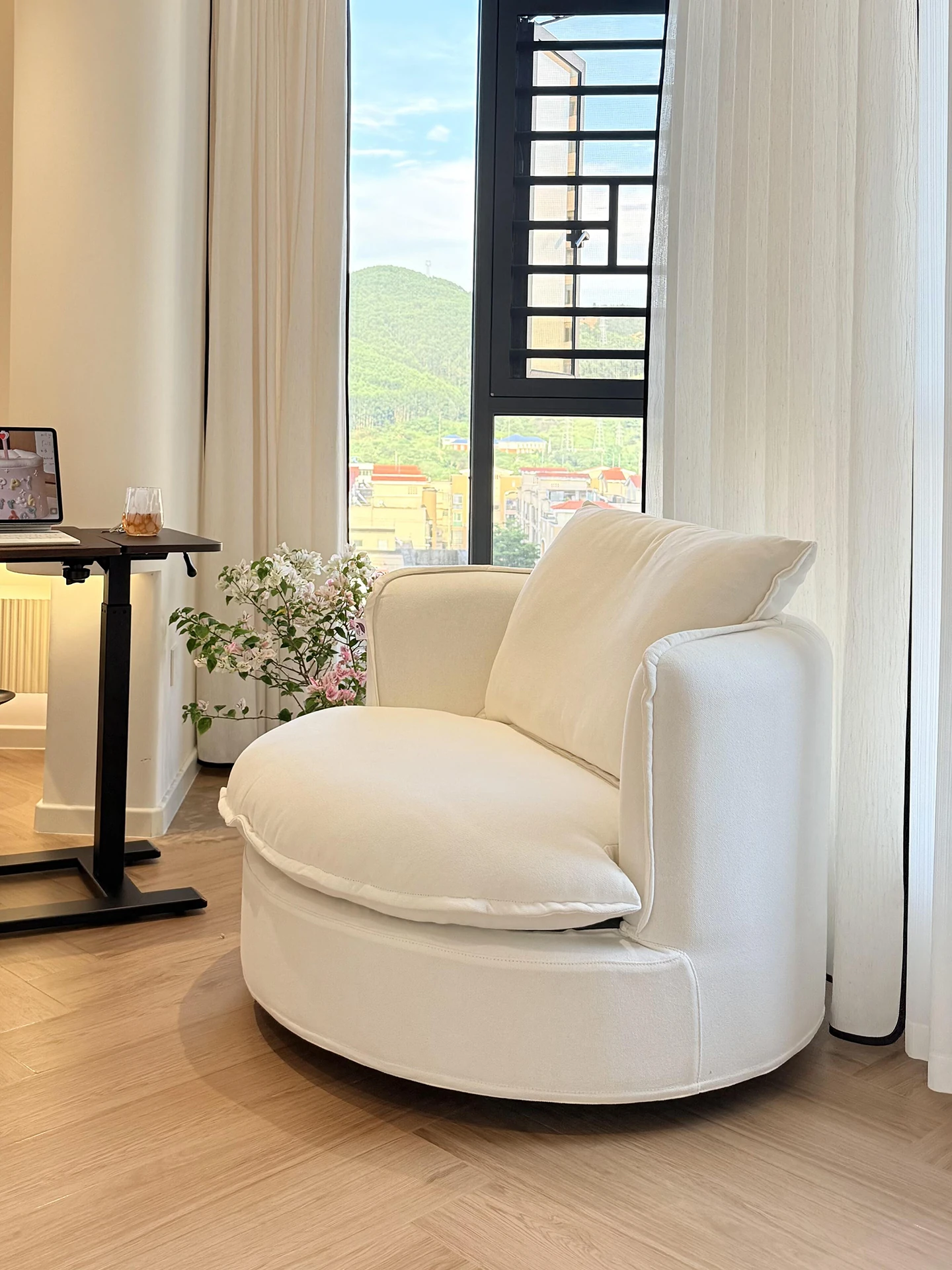 Creamy Single Sofa - Cozy Lazy Chair for Living Room & Balcony, Rotatable and Removable Cover, Cotton-Linen Fabric for Ultimate Relaxation