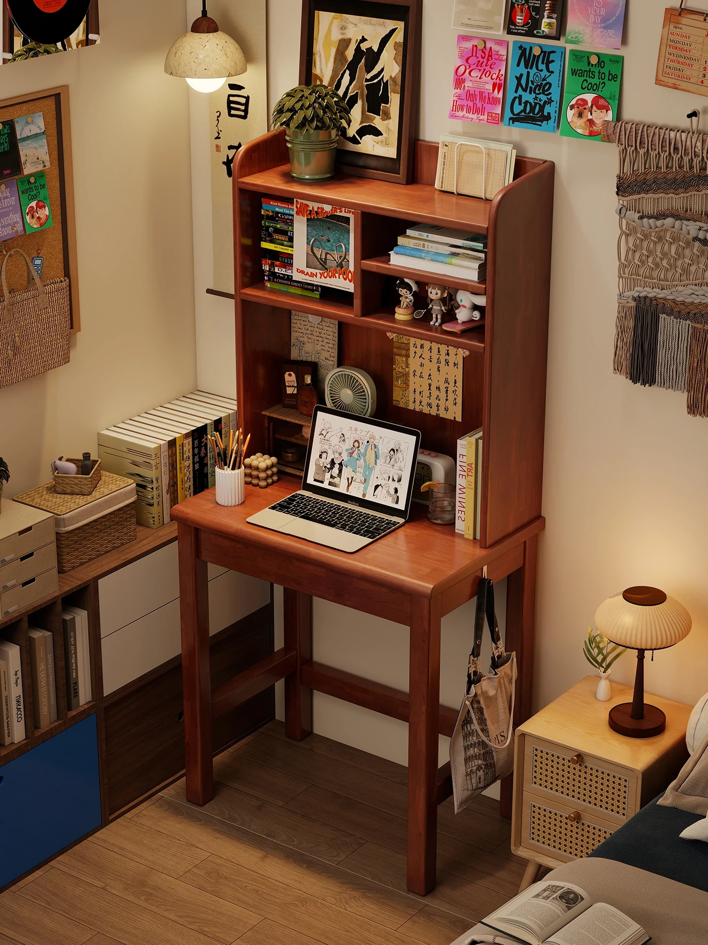 Modern Minimalist Solid Wood Desk and Bookshelf Combo for Home Use - Perfect Small Bedroom Study Table for Students with Ample Storage Space