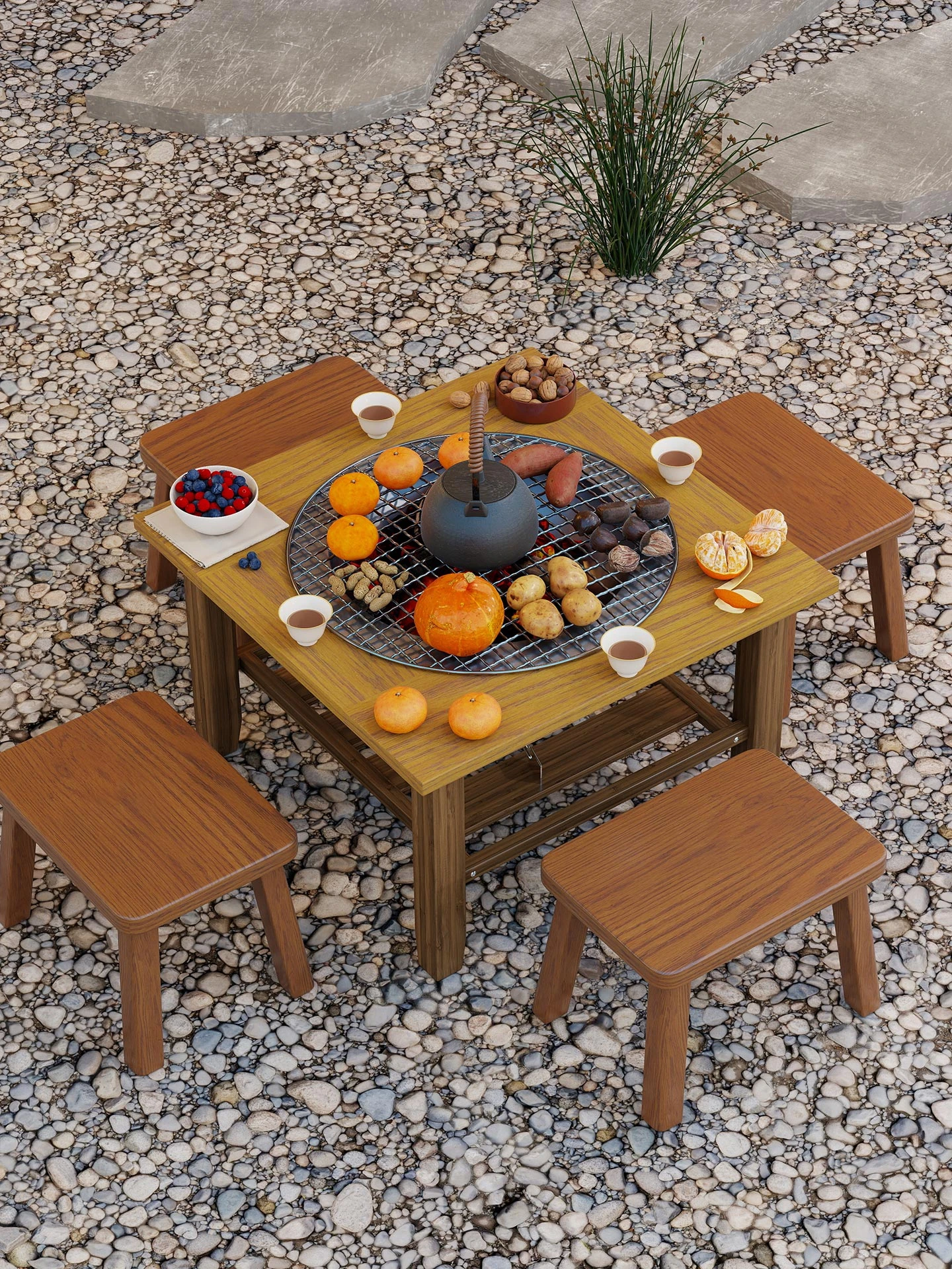 Solid Wood Heating Table for Cozy Gatherings - Versatile Fire Pit for Tea, BBQ, and Hot Pot in Your Patio - Perfect for Winter Warmth and Family Bonding