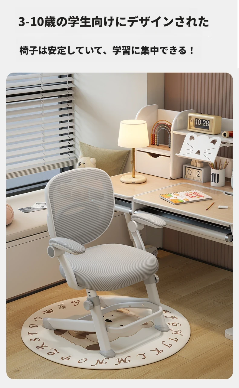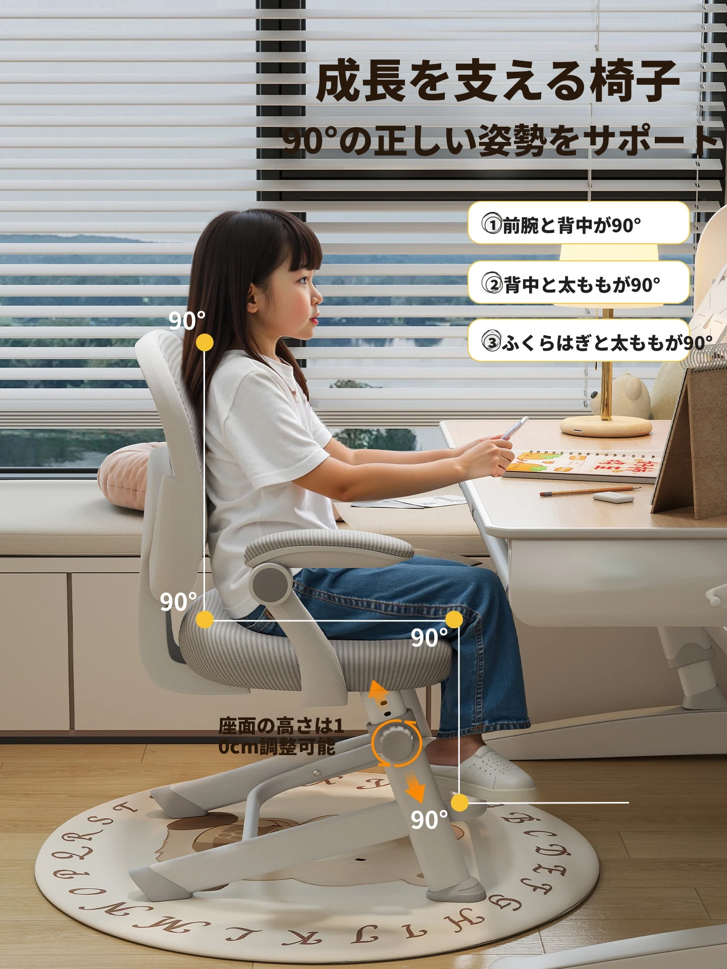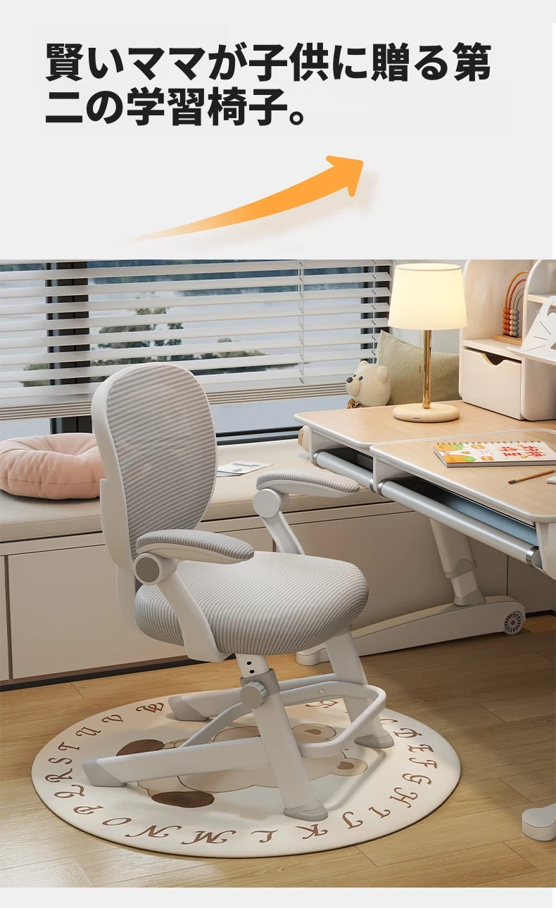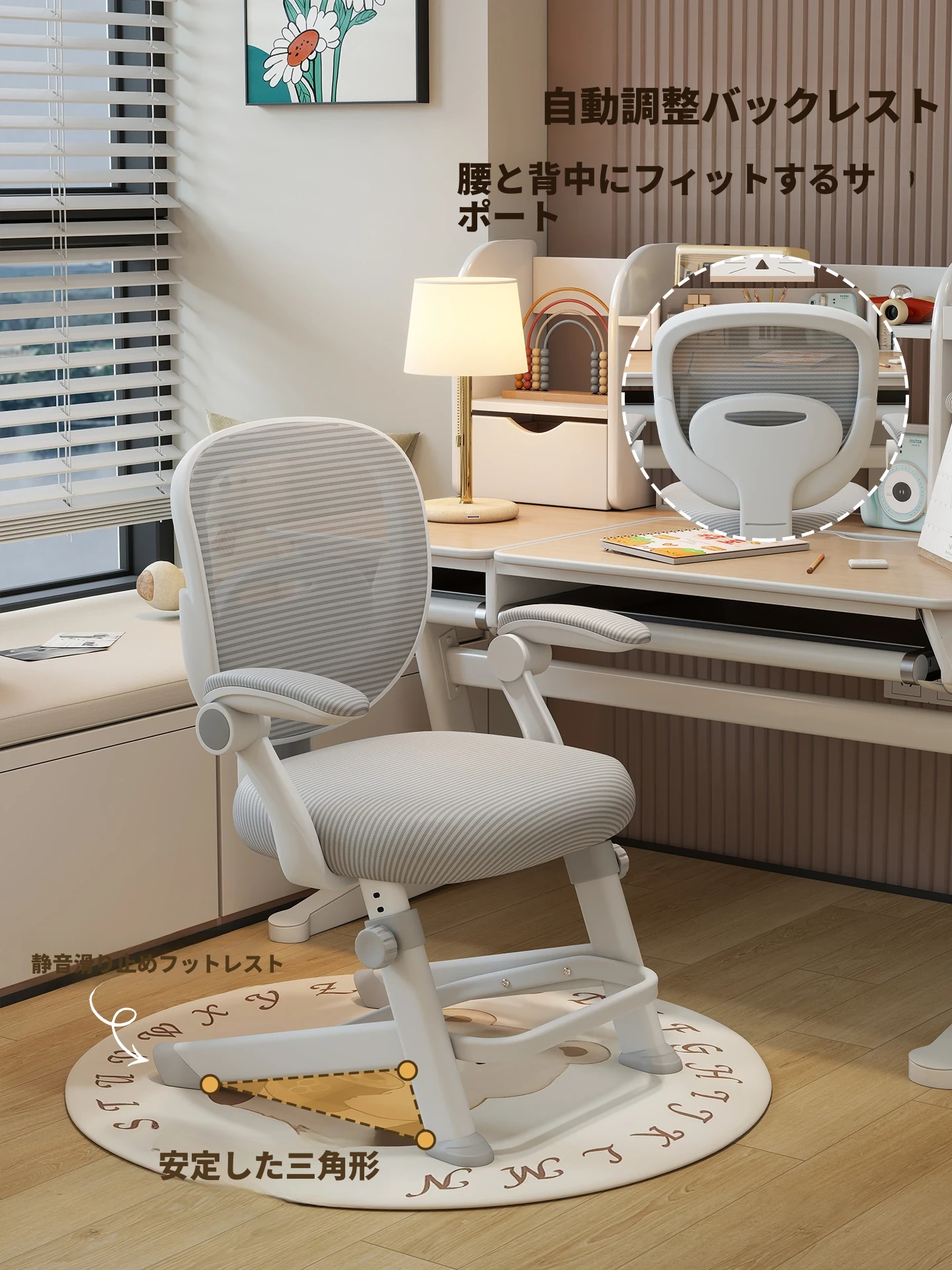 子供用学習椅 家庭でのリラックスと正しい姿勢をサポート!高さ調節可能な小学生向けのデスクチェア。書斎にぴったりな背もたれ付きで、快適な学習環境を提供します。