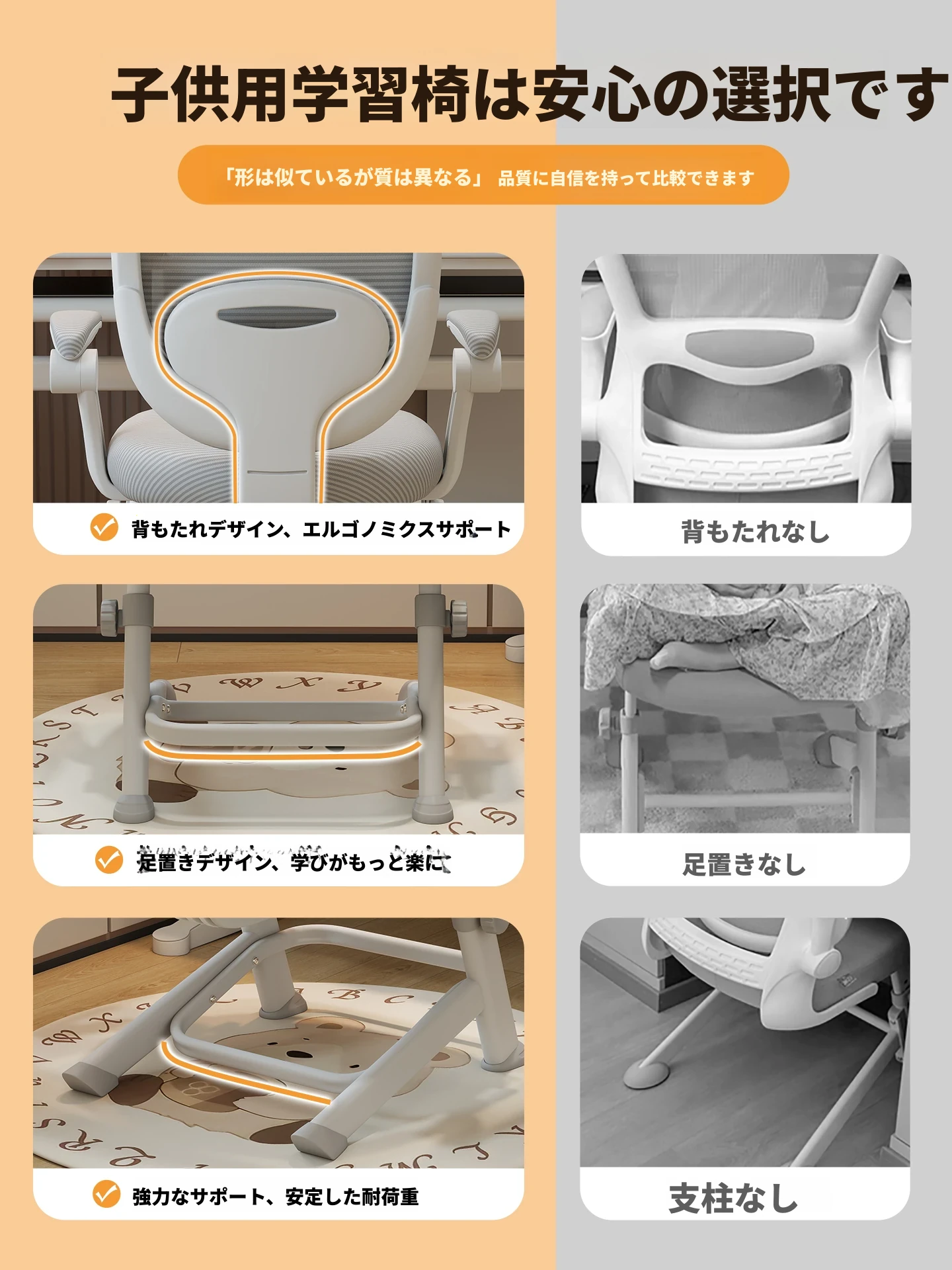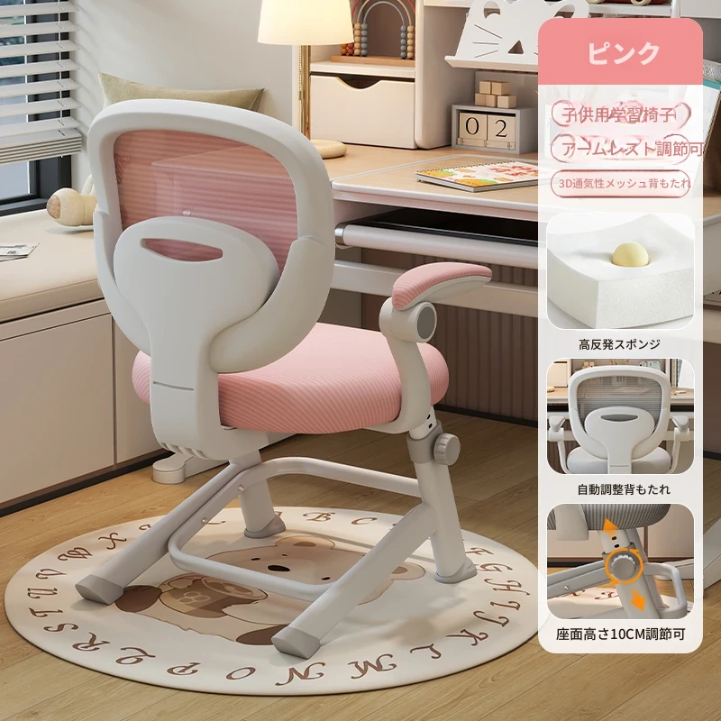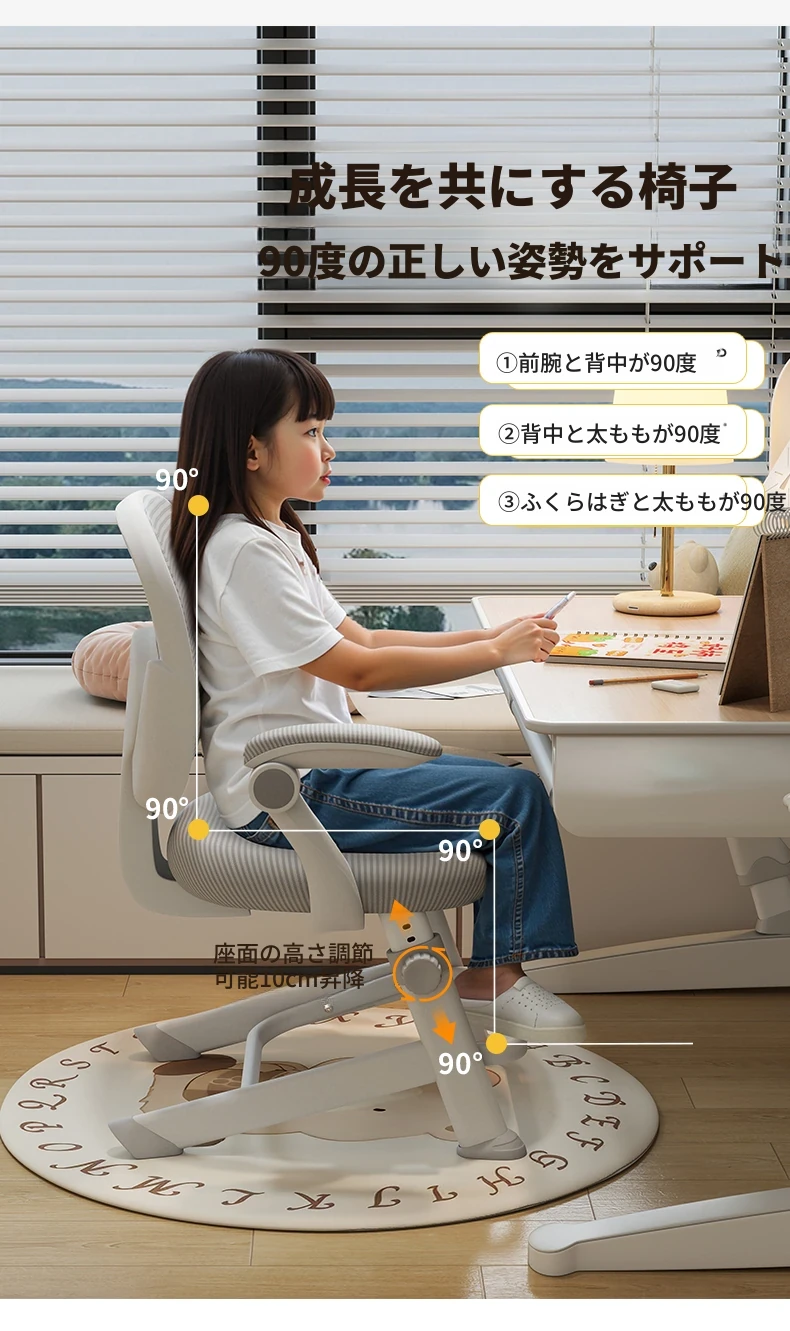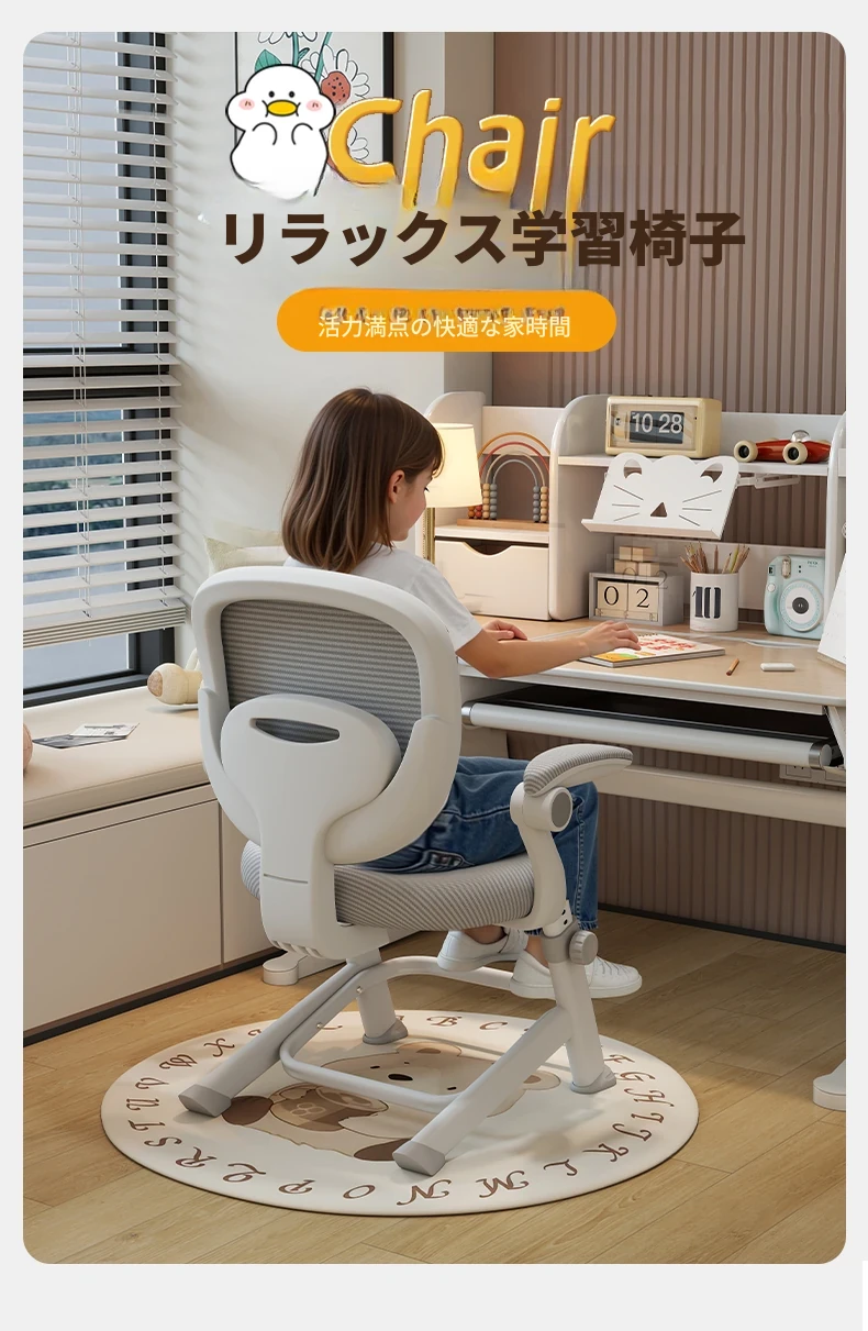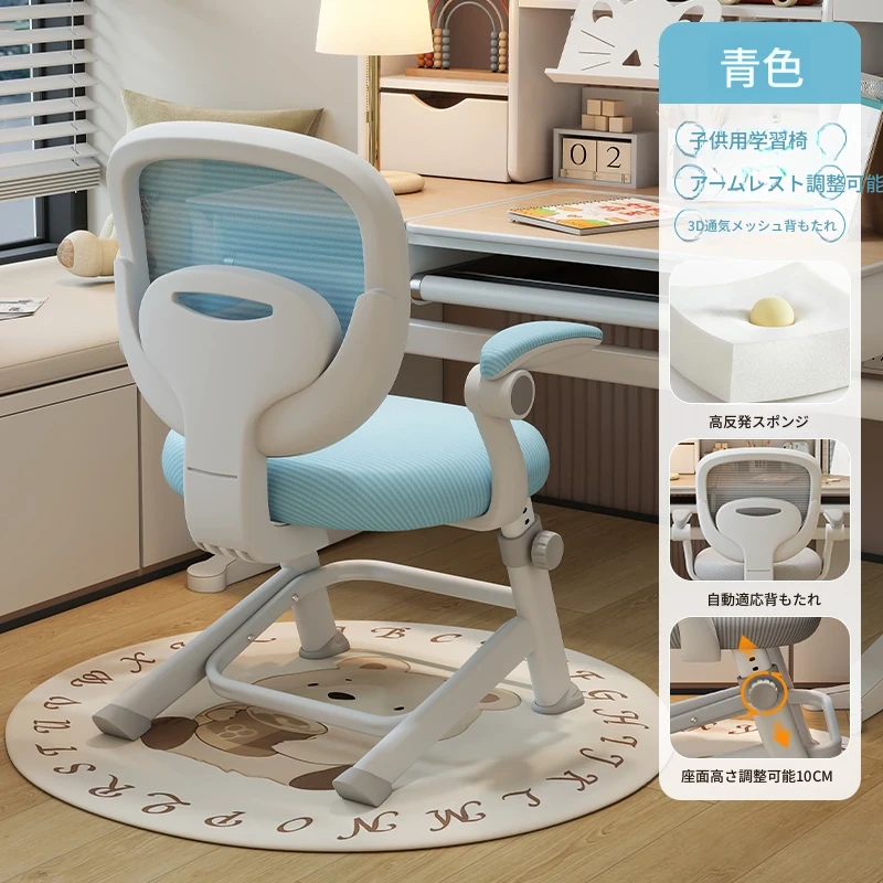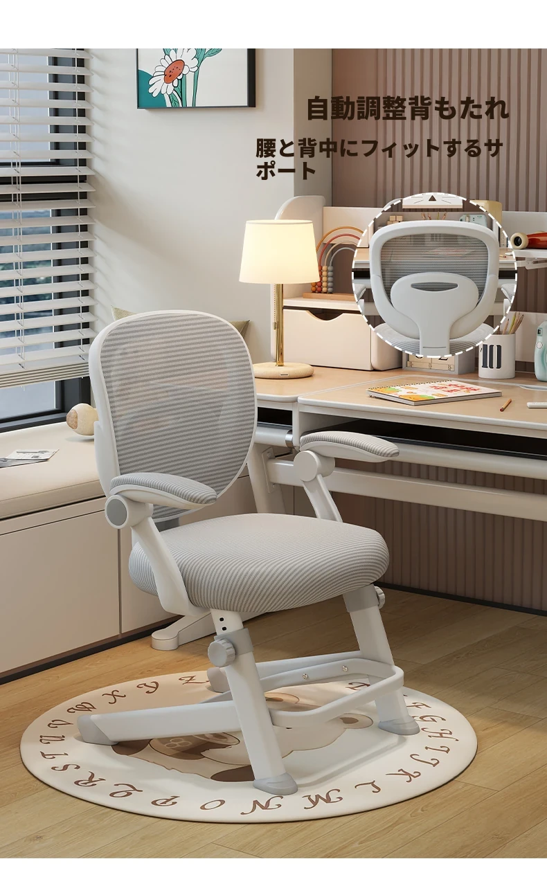 子供用学習椅 家庭でのリラックスと正しい姿勢をサポート!高さ調節可能な小学生向けのデスクチェア。書斎にぴったりな背もたれ付きで、快適な学習環境を提供します。