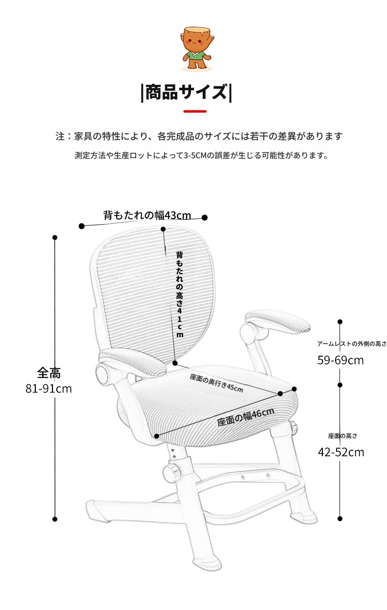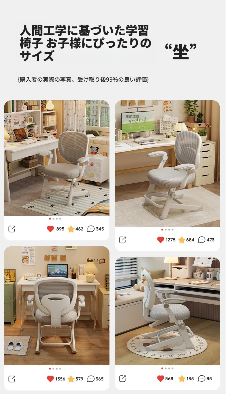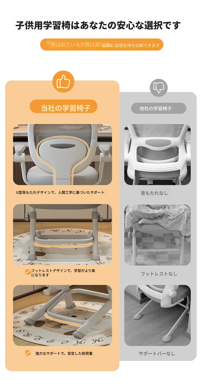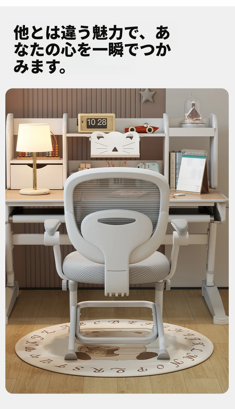 子供用学習椅 家庭でのリラックスと正しい姿勢をサポート!高さ調節可能な小学生向けのデスクチェア。書斎にぴったりな背もたれ付きで、快適な学習環境を提供します。
