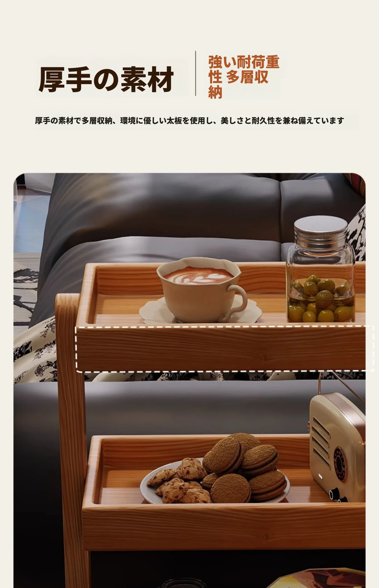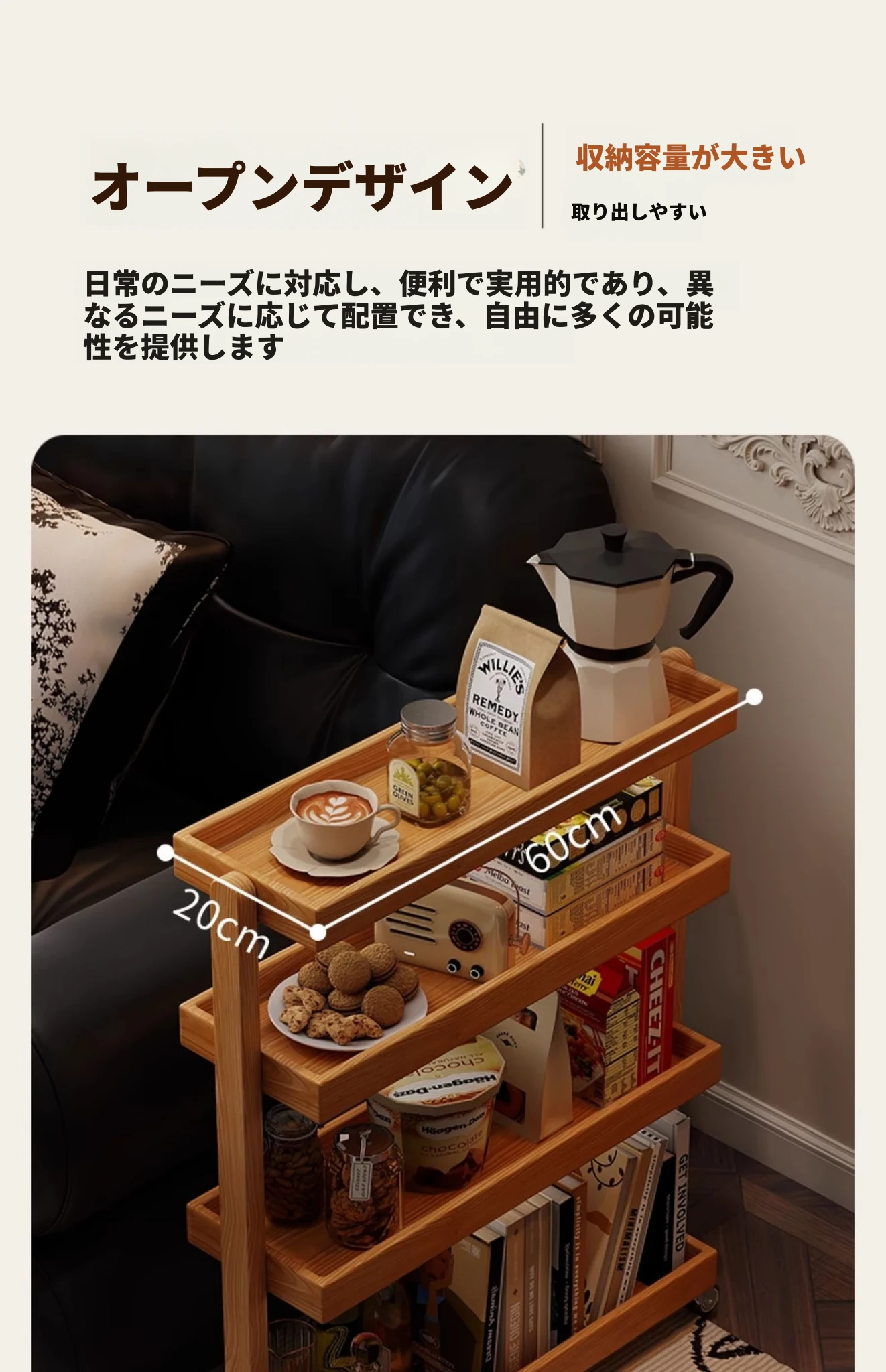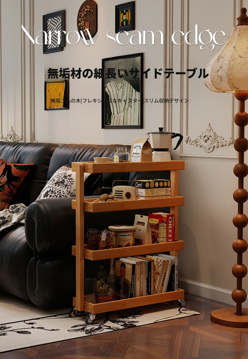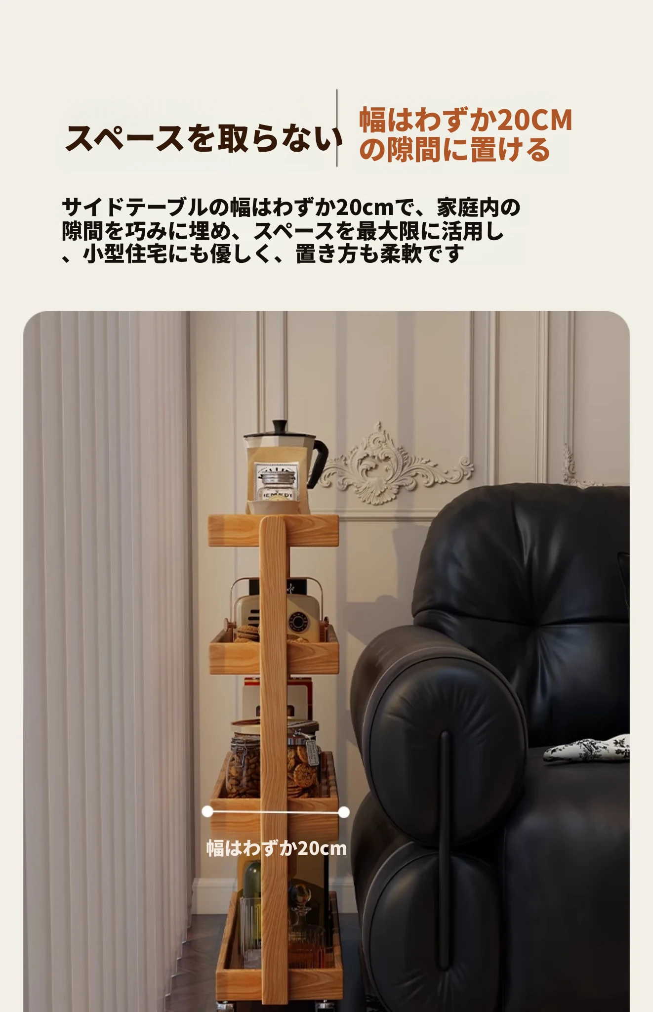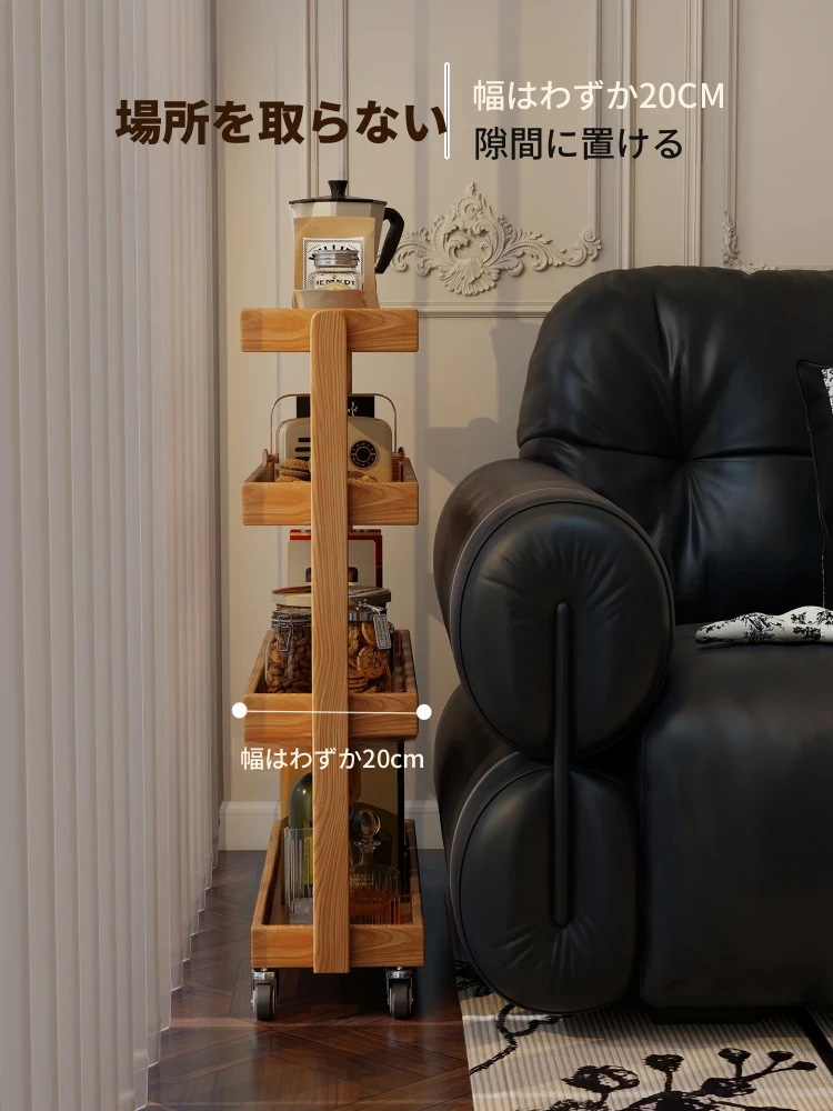 家庭用隙間収納ラック!多層設計で省スペースを実現!ソファの横にぴったりフィットするコンパクトな移動式キャリー。おしゃれで便利な収納ソリューションで、リビングをスッキリ整頓!