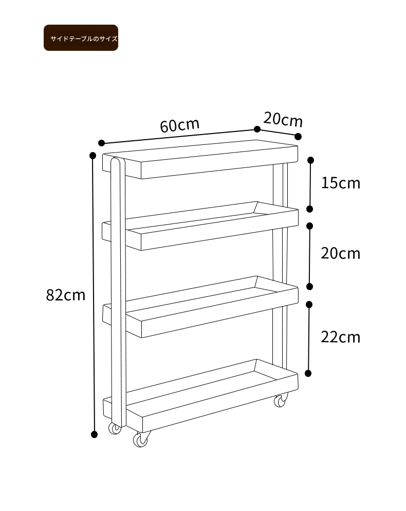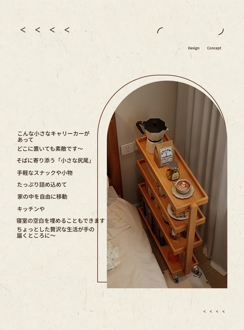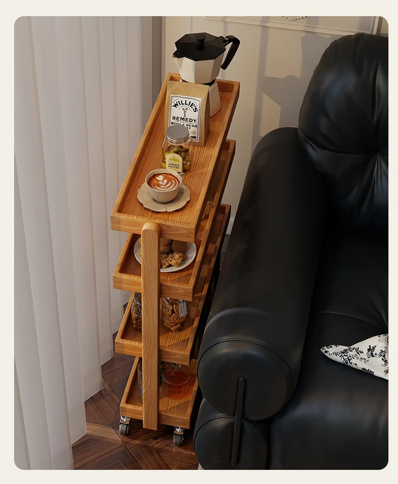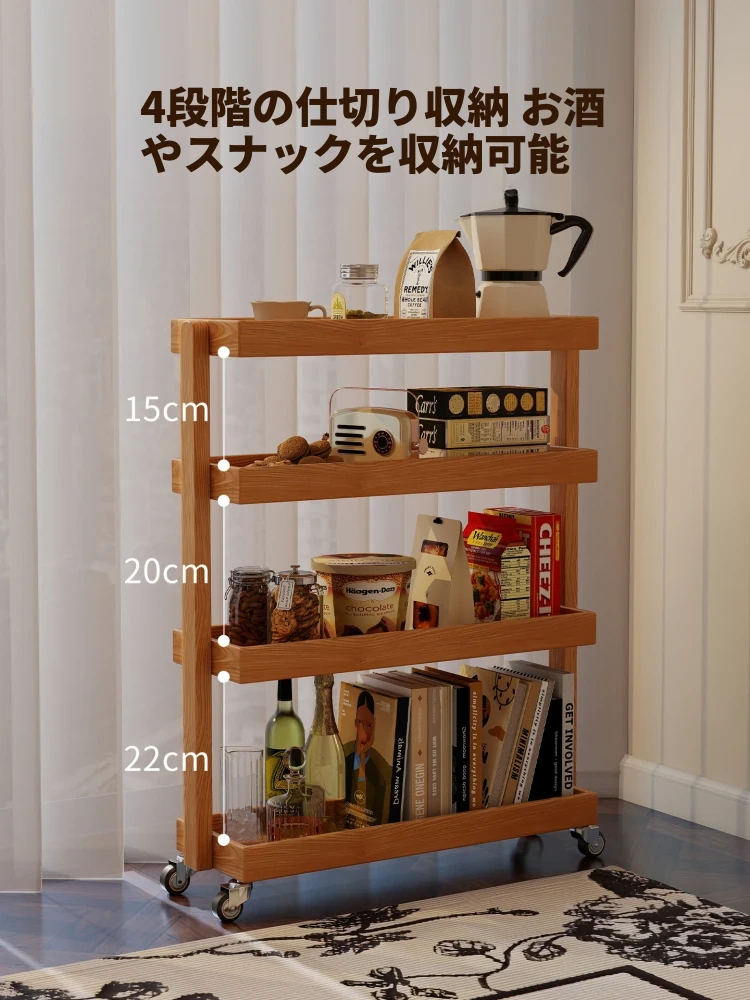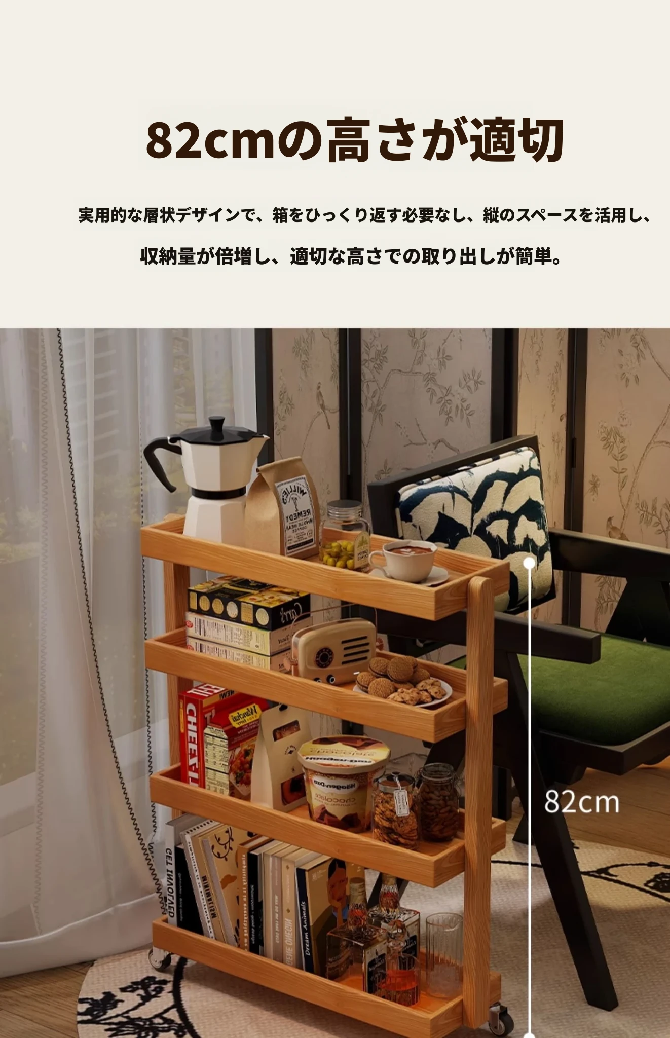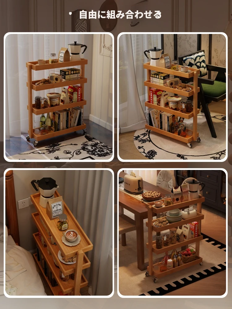 家庭用隙間収納ラック!多層設計で省スペースを実現!ソファの横にぴったりフィットするコンパクトな移動式キャリー。おしゃれで便利な収納ソリューションで、リビングをスッキリ整頓!